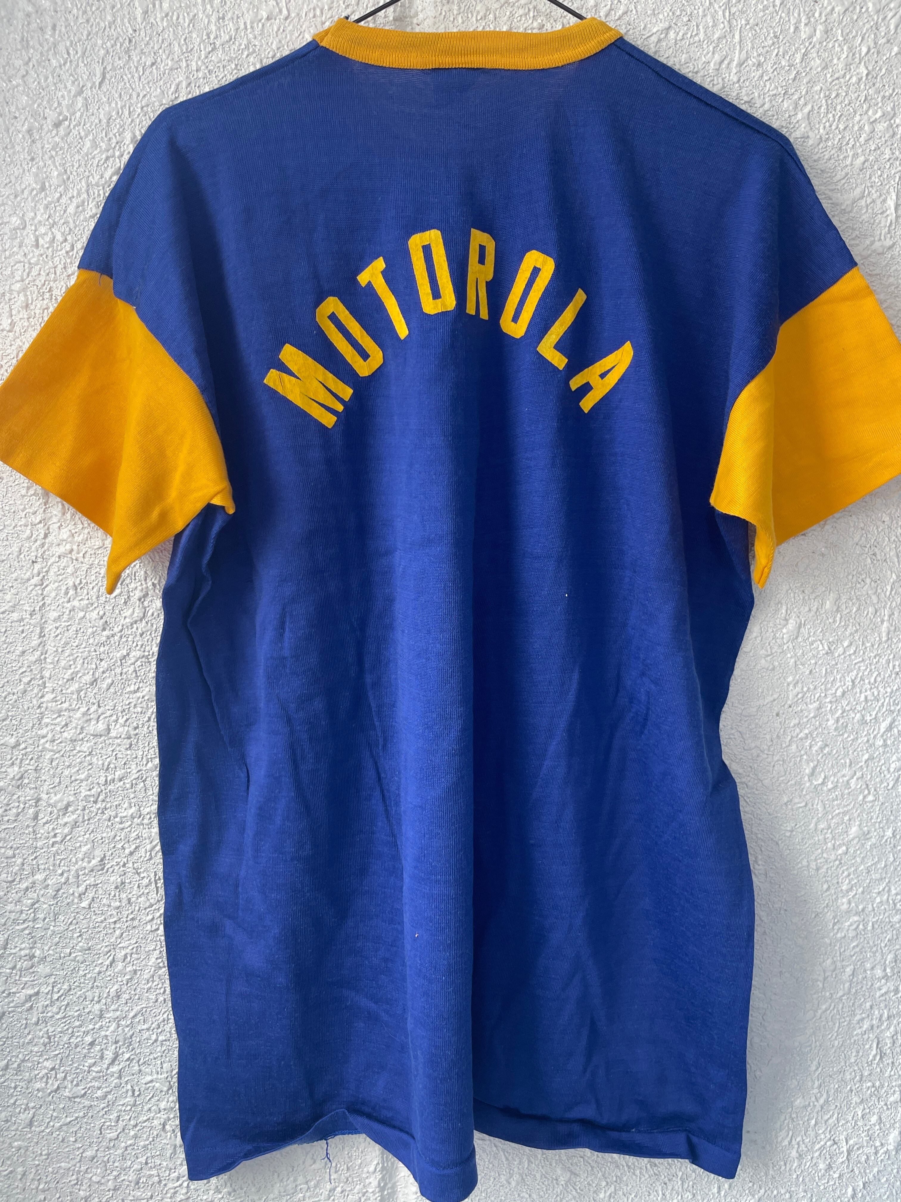 袖裾シングル、フロッキープリント。通信、携帯電話会社のモトローラ社のTシャツ。
