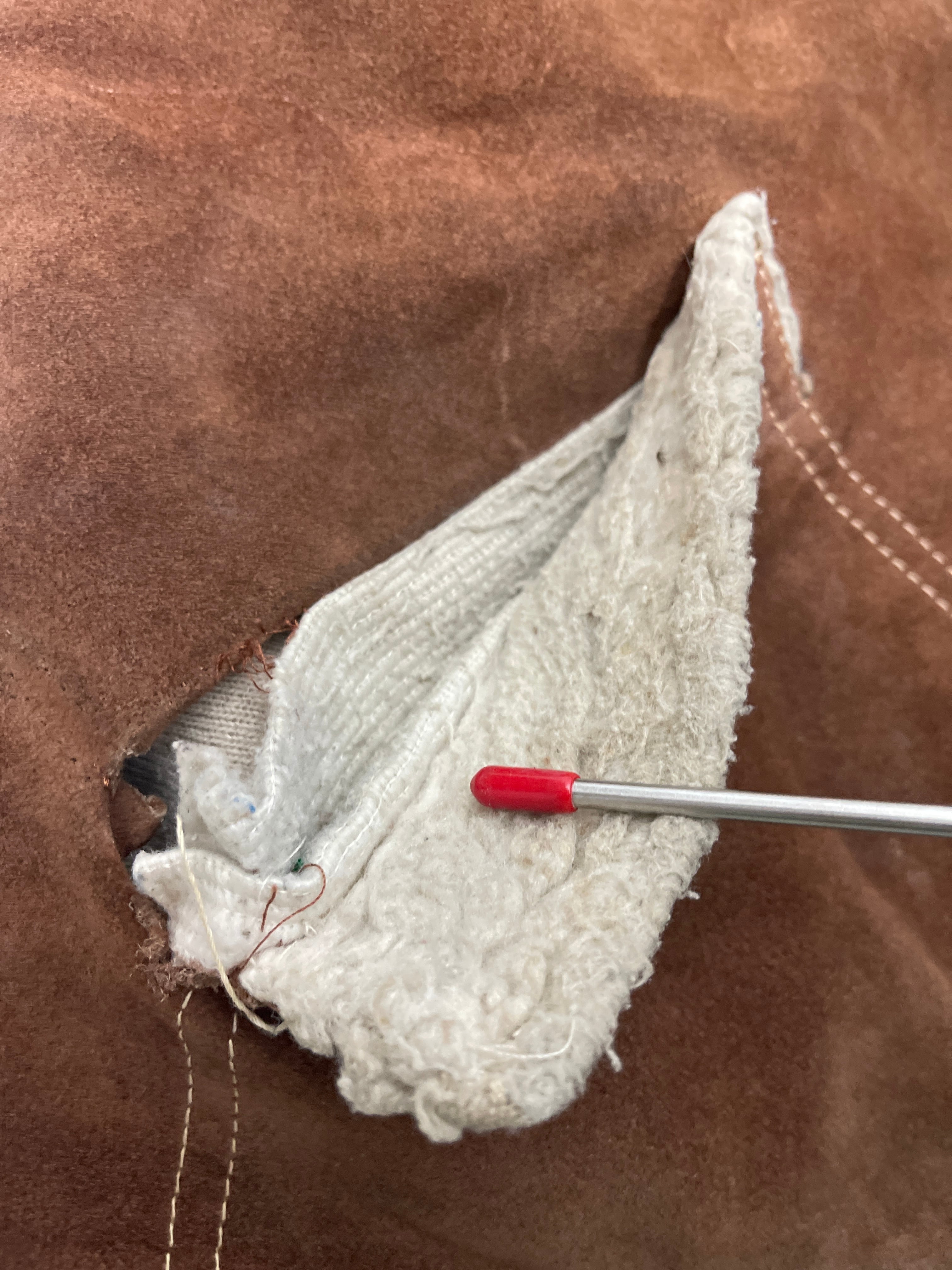 使用感があり、ボア部分の汚れがあり、ポケット部分のほつれがあります。