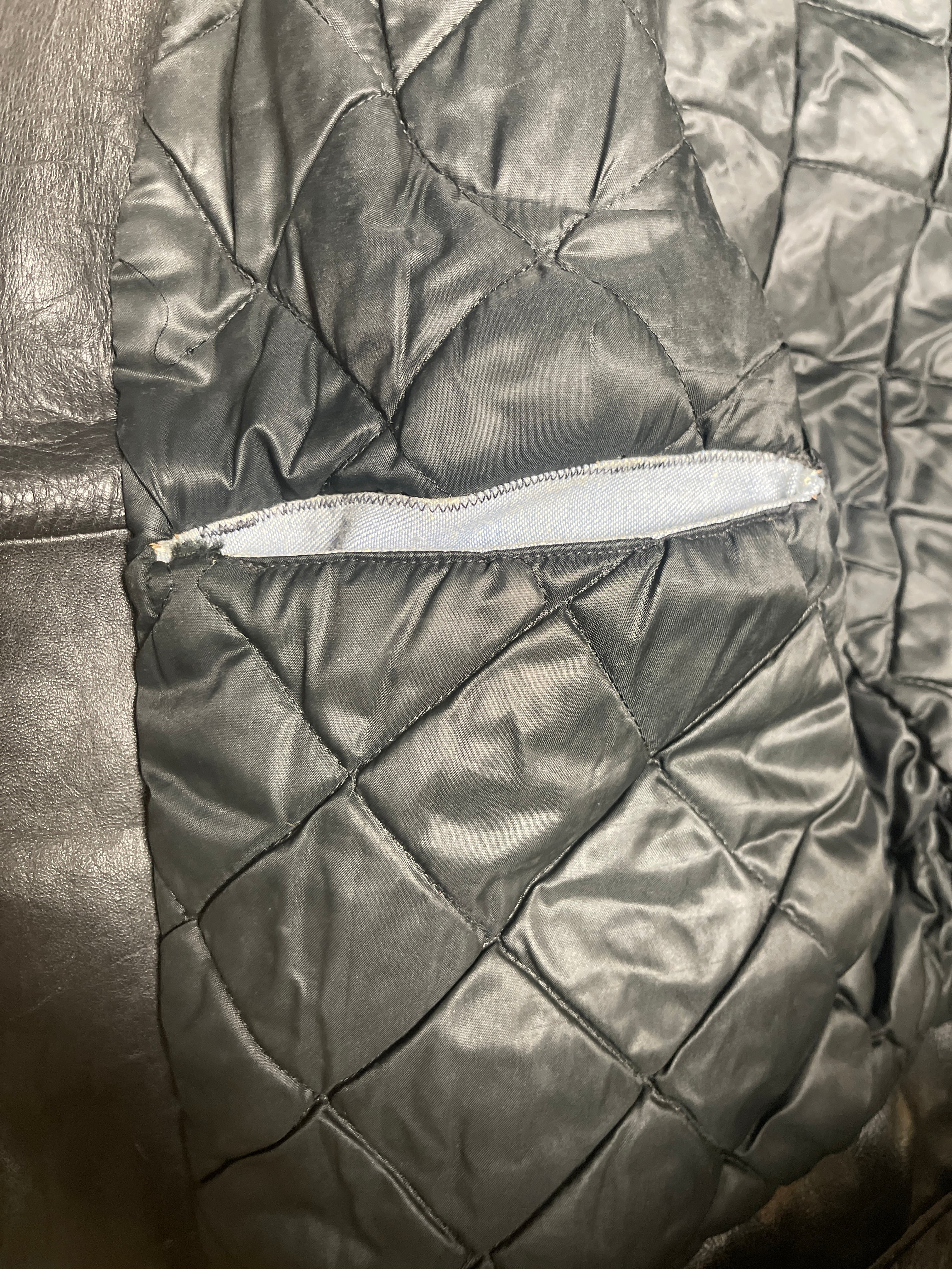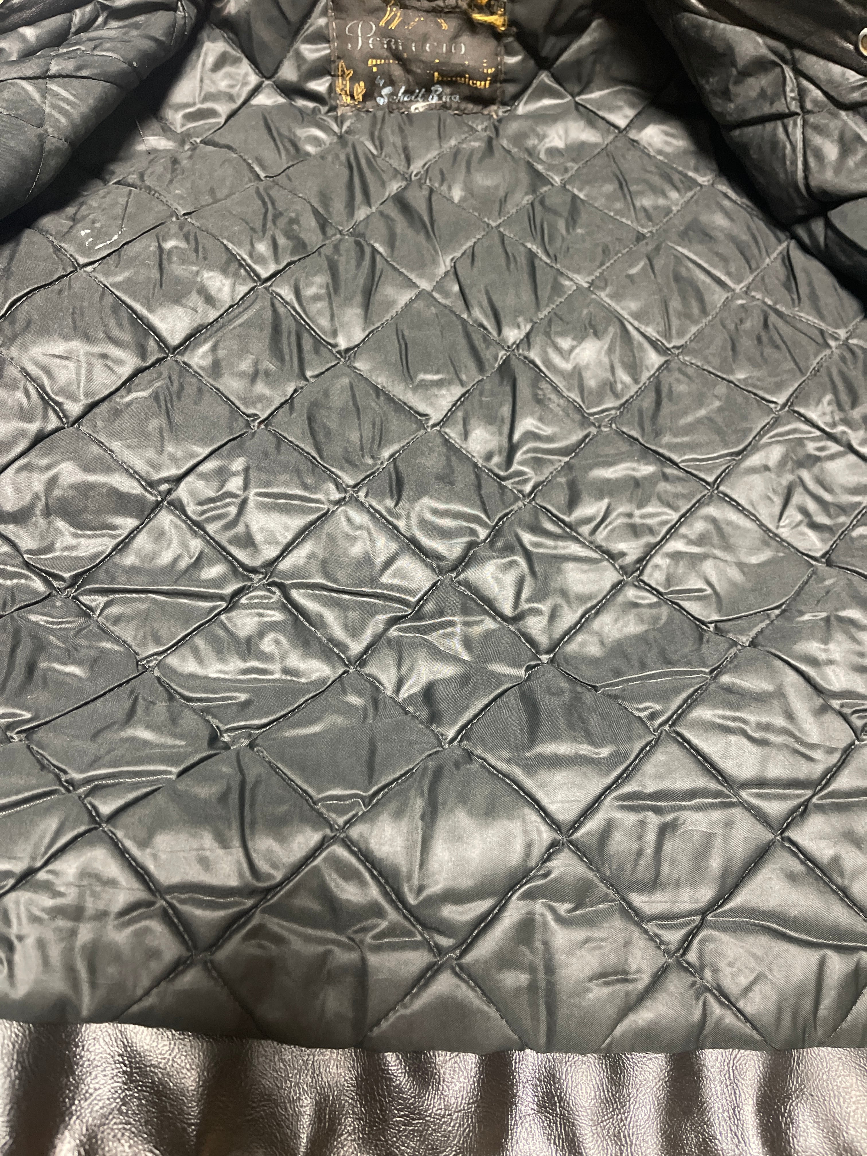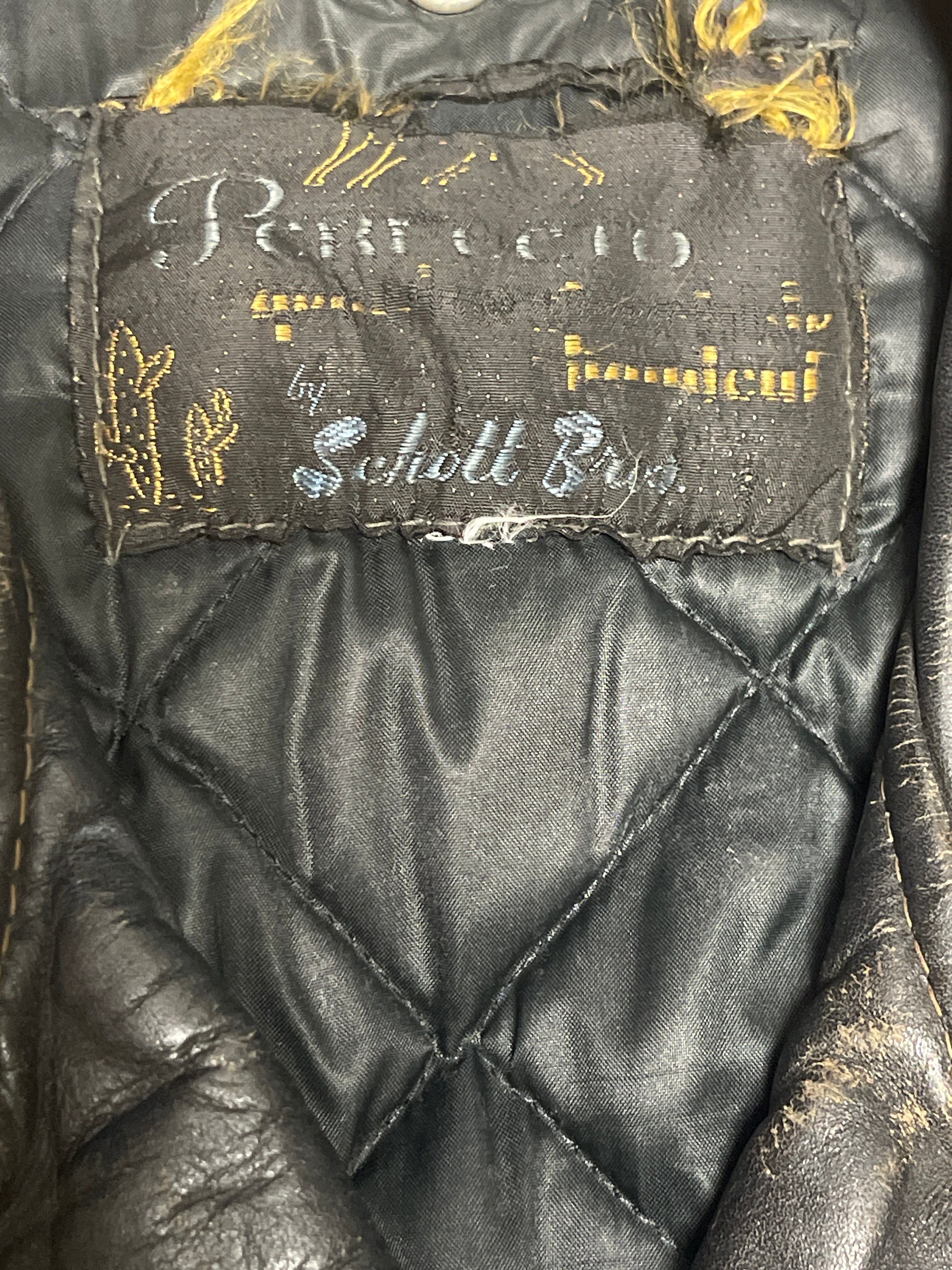 CONDITION : 使用感があり、小傷、汚れ等ございます。裏地に多少のダメージあり。かなり着込んだ感があり、後ろ肩下ほつれ、違和感のない右胸から肩にかけて革の補強、左袖先の革の補強、裏地に内ポケが作られています。ジップはすべて可動します。擦れ傷がかなり多めですが穴はありません。普通に着れると思います。