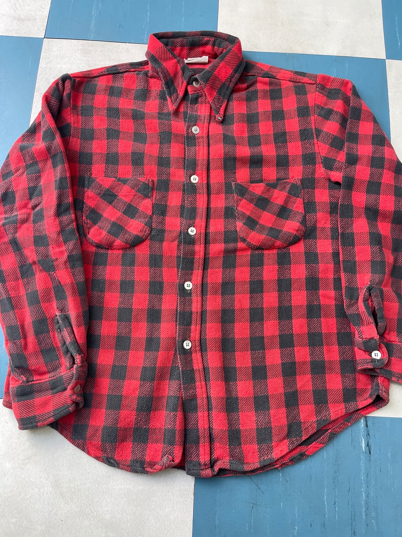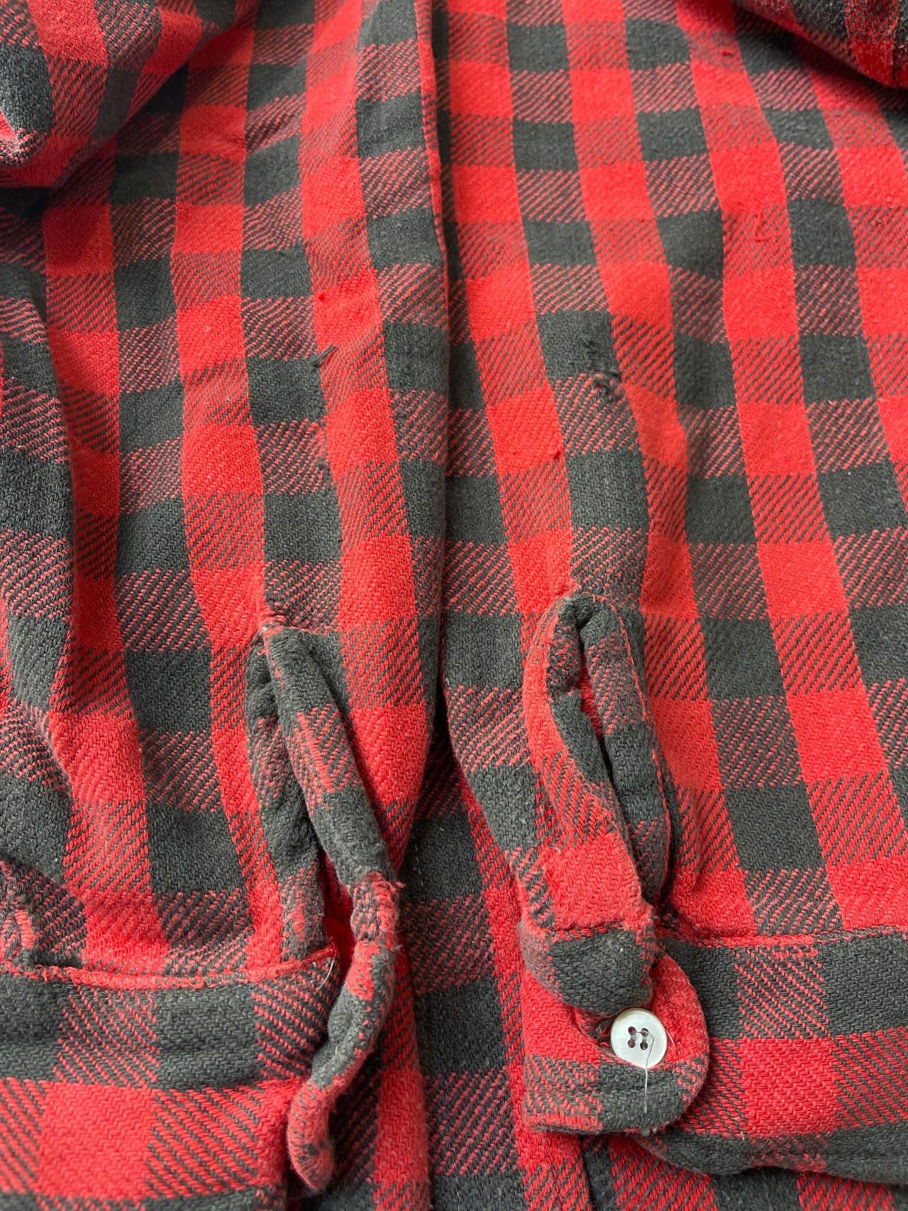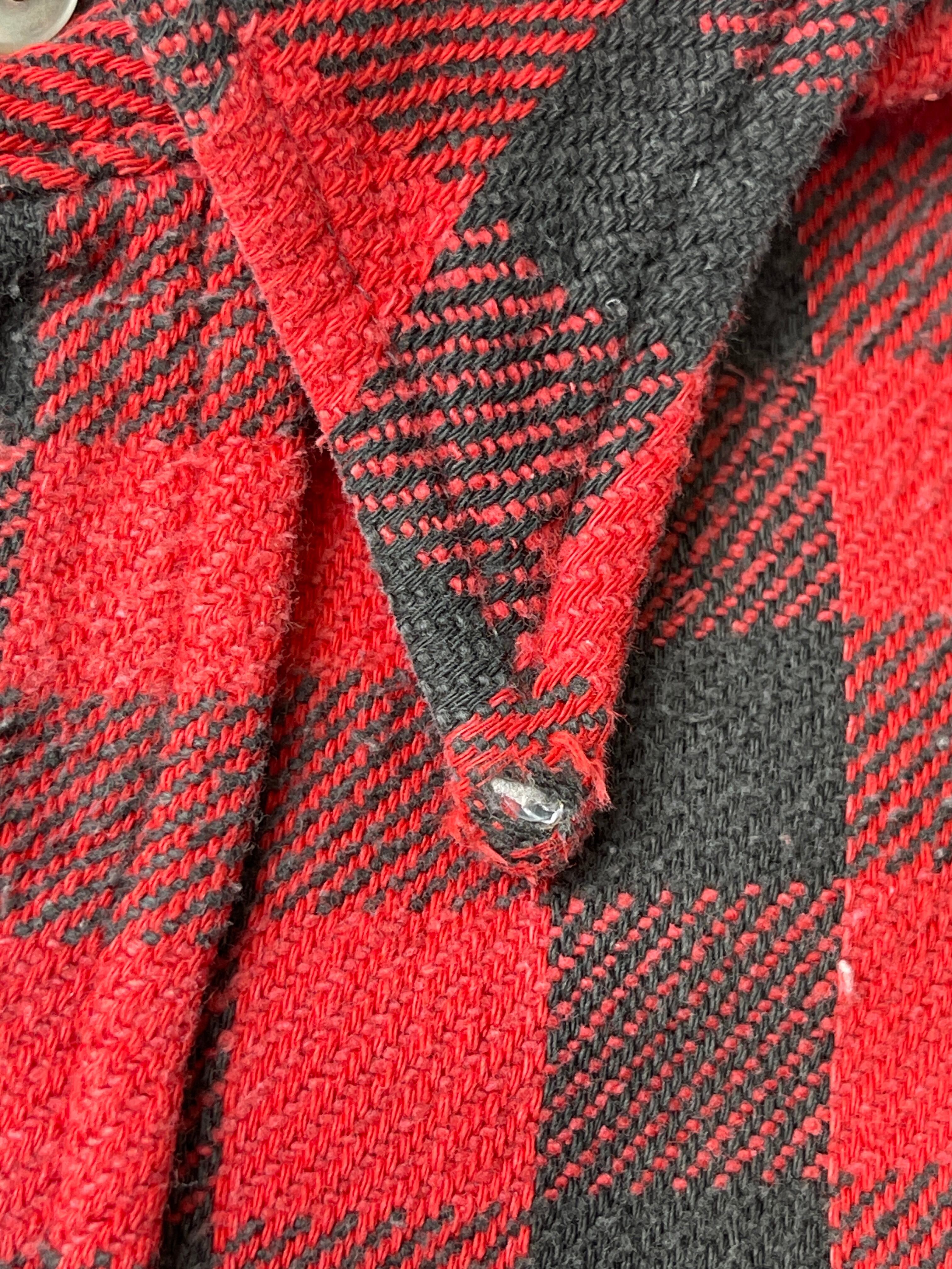 使用感があり、多少の汚れ、小傷多め、ほつれ多め、襟先ダメージ等があります。中々ない小さい四角のバッファローチェック! すごくナイスカラーです ! ダメージ多めとお考え下さい。