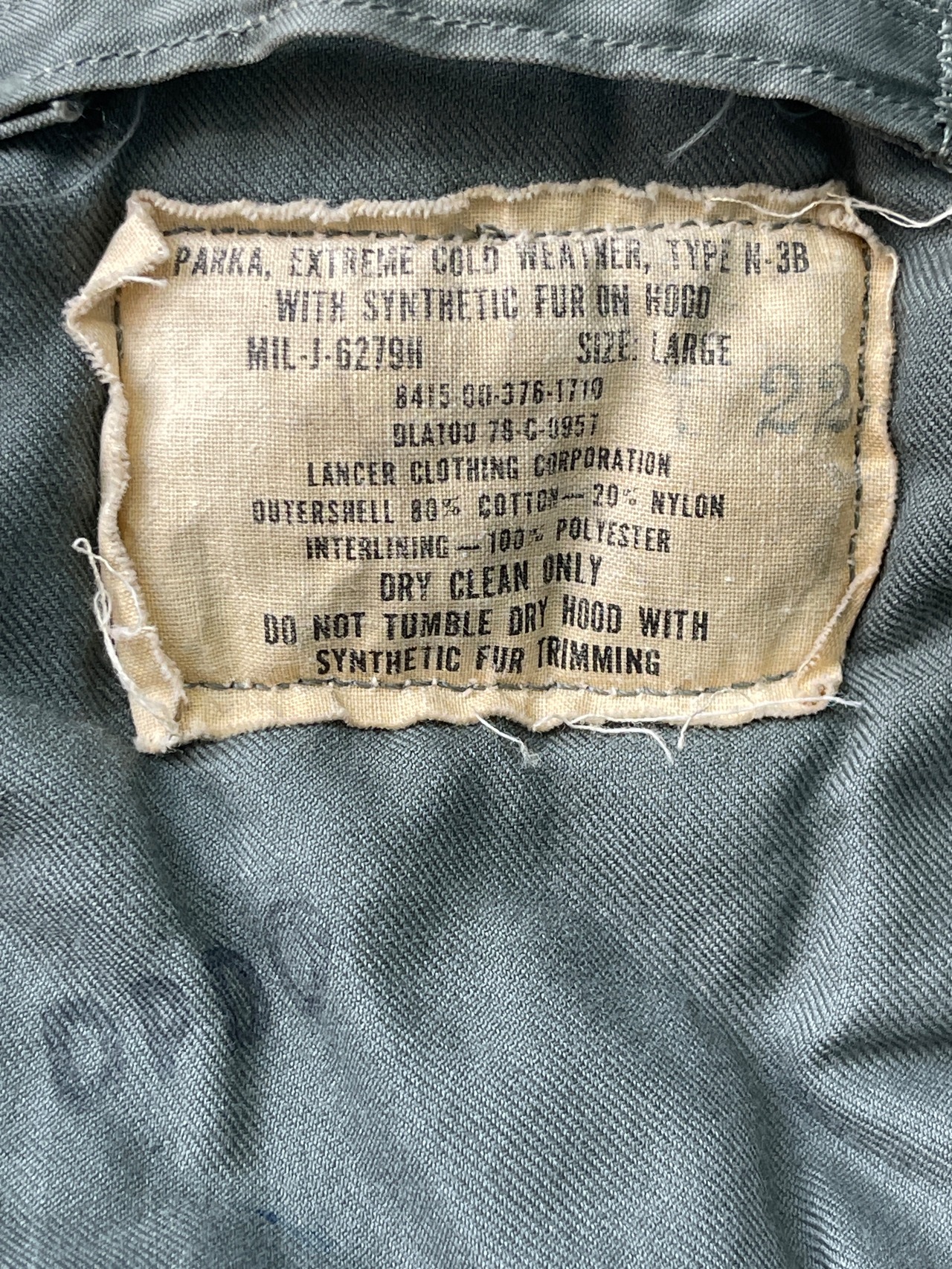 2011 LARGE 1978年 US ARMY N-3B JACKET N-3B ジャケット MIL-J-6279H