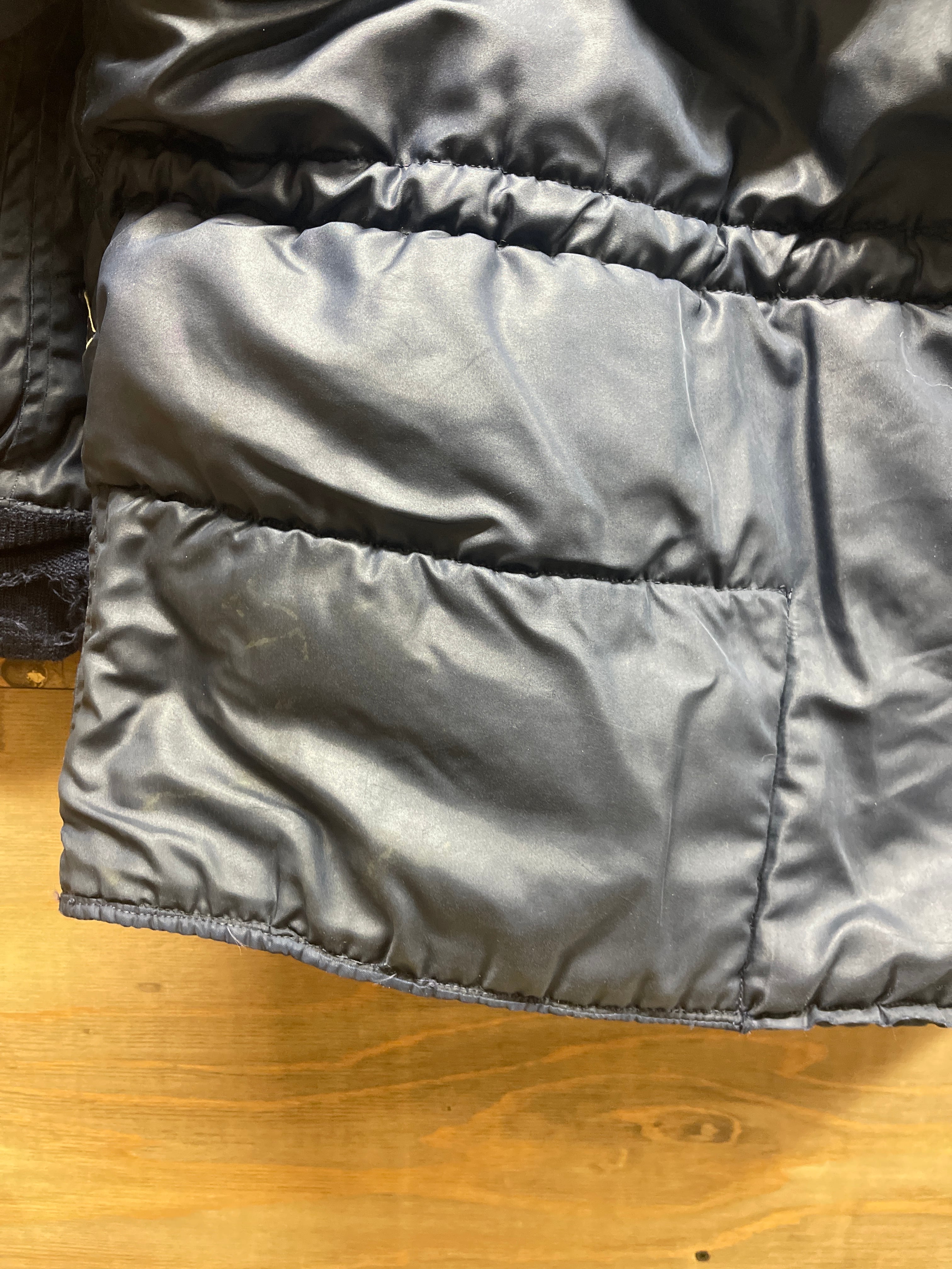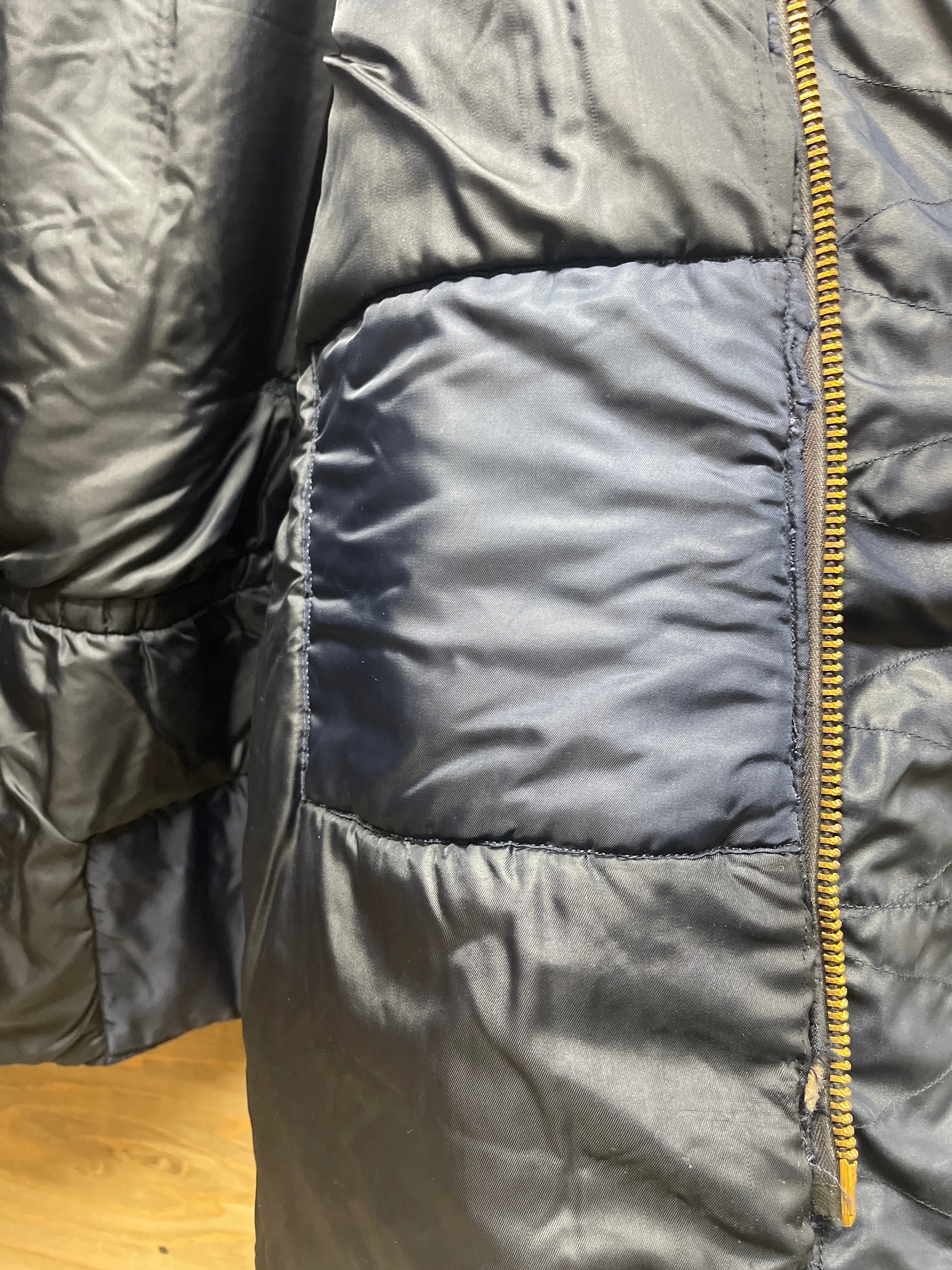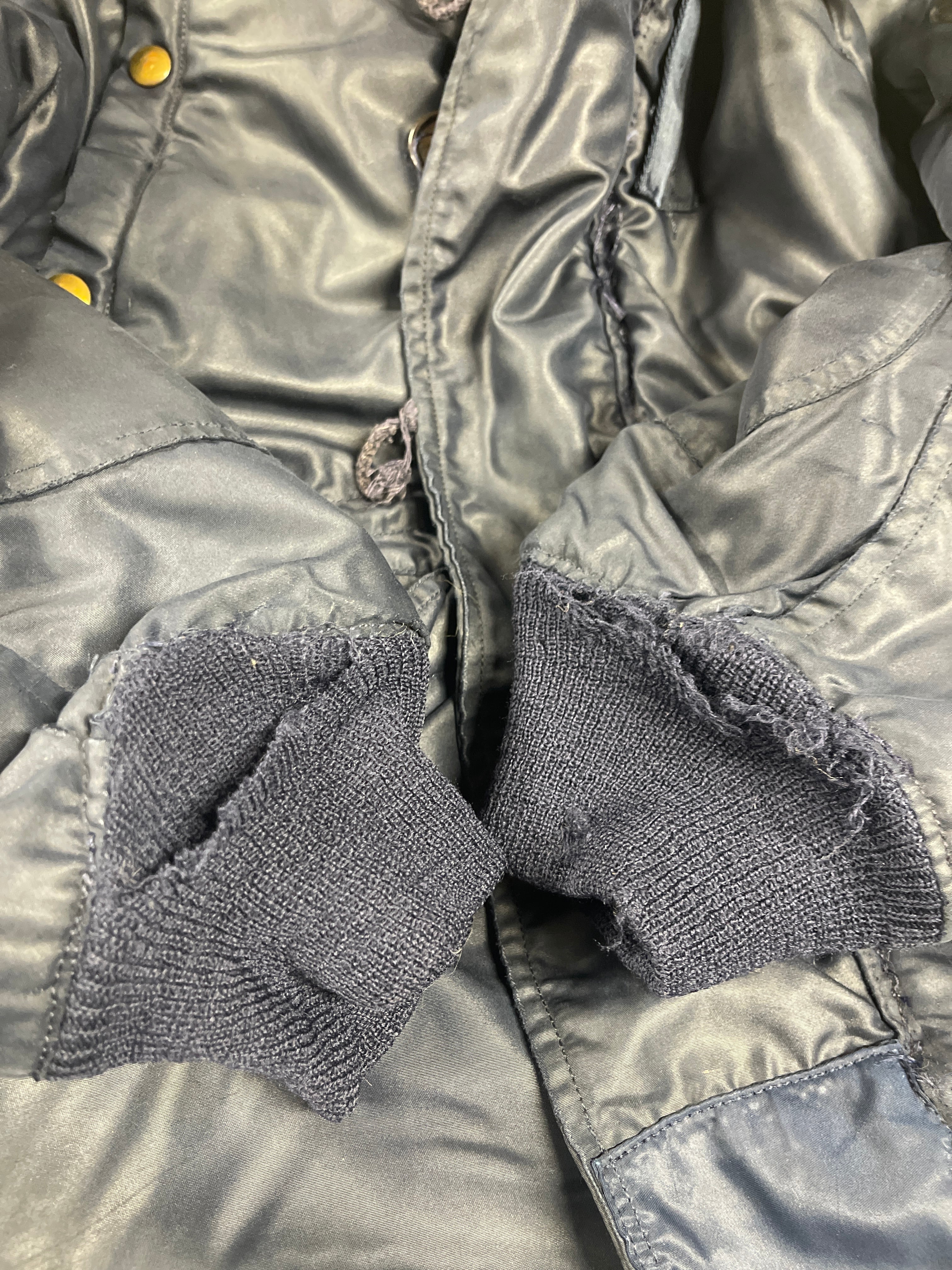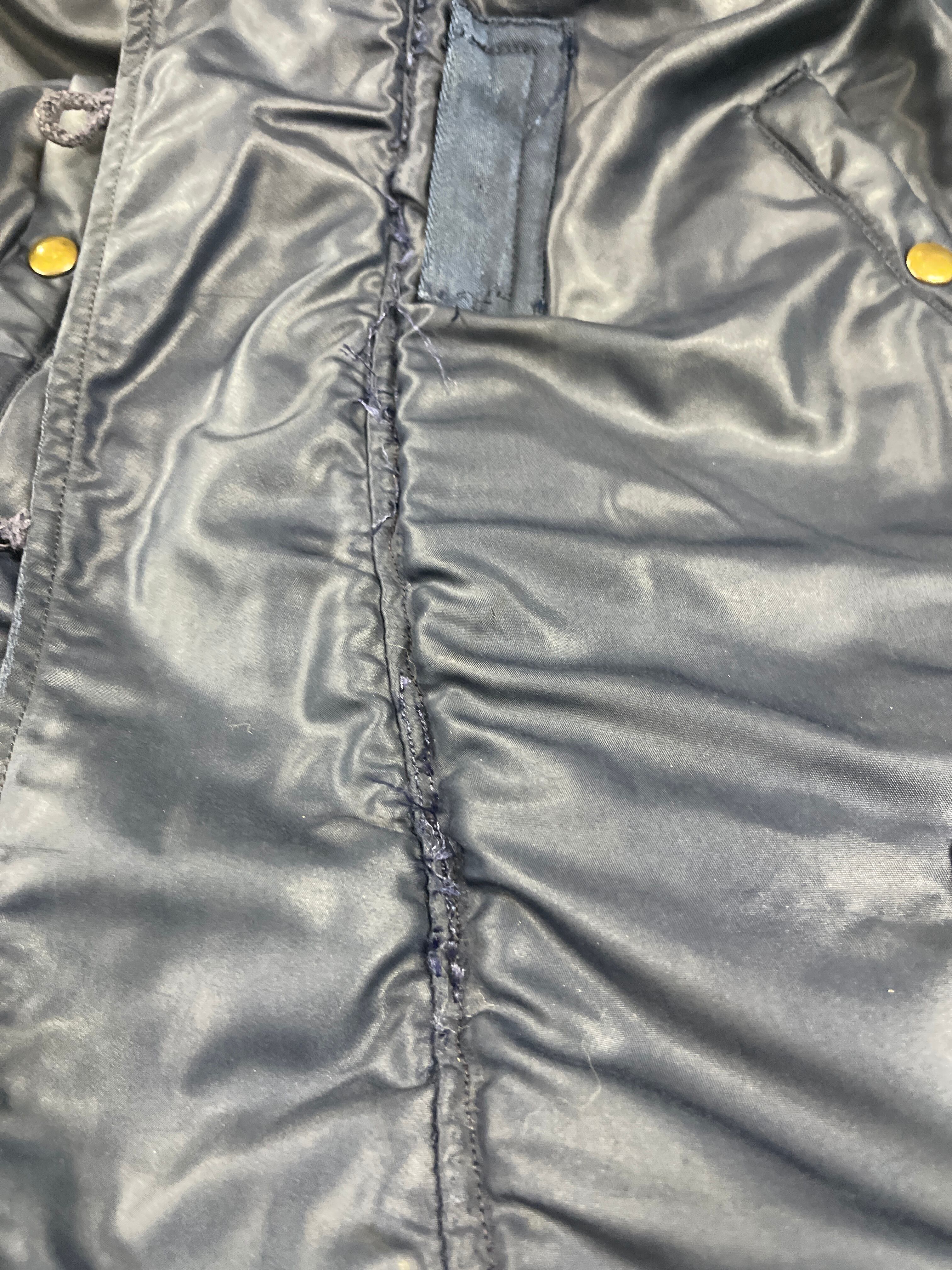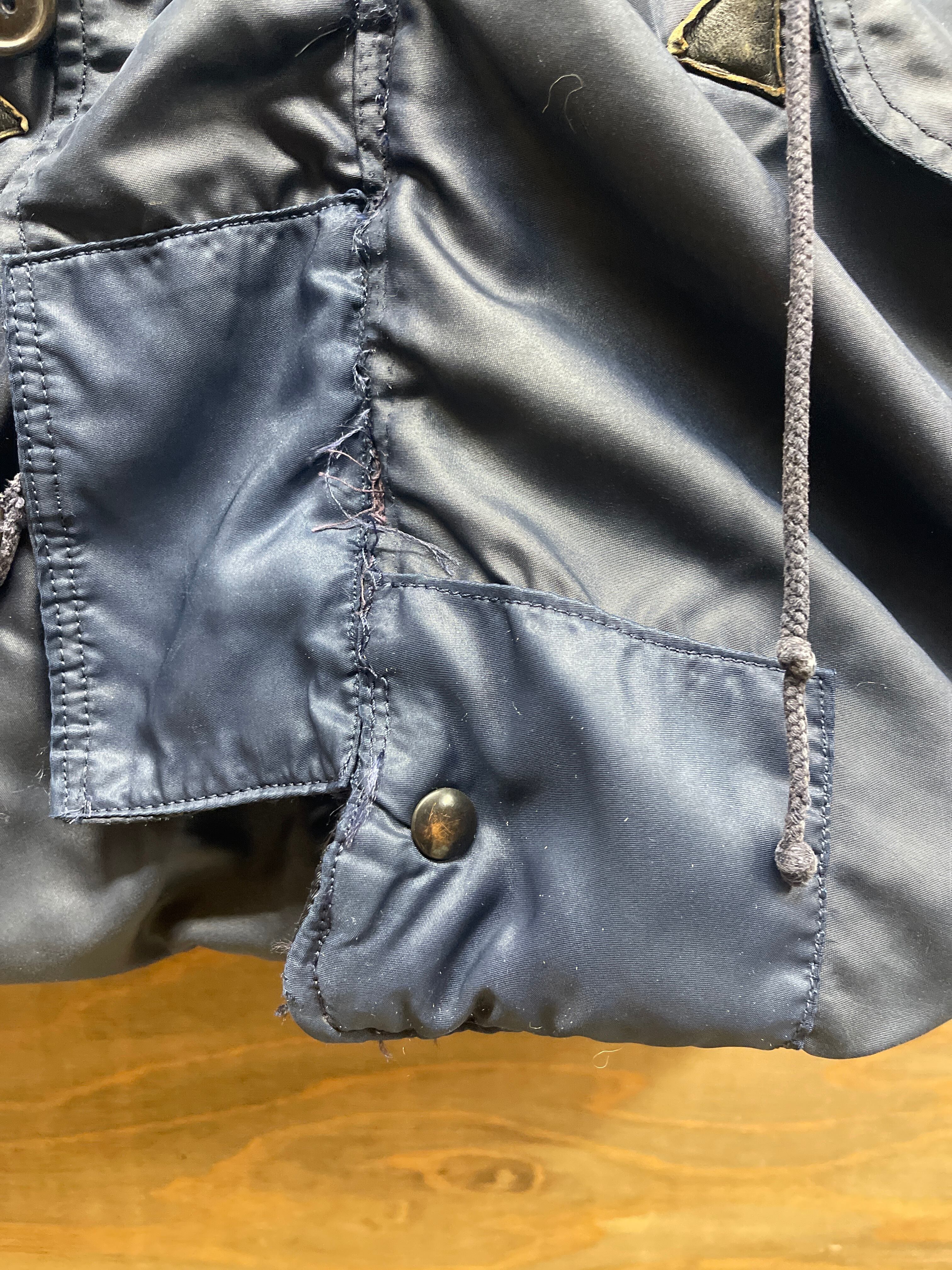 使用感、小傷、多少の汚れあり、表面5か所、裏地3か所リペアー跡、フード裏ダメージ、ボタン掛け輪っか1か所ダメージ、両袖リブダメージ、小さいリペアー数か所などがあります。ダメージは、かなりありますが、ぱっと見ですが普通に見えます。洗濯もしているので当分快適に着用できると思います。AFマークは見えません。