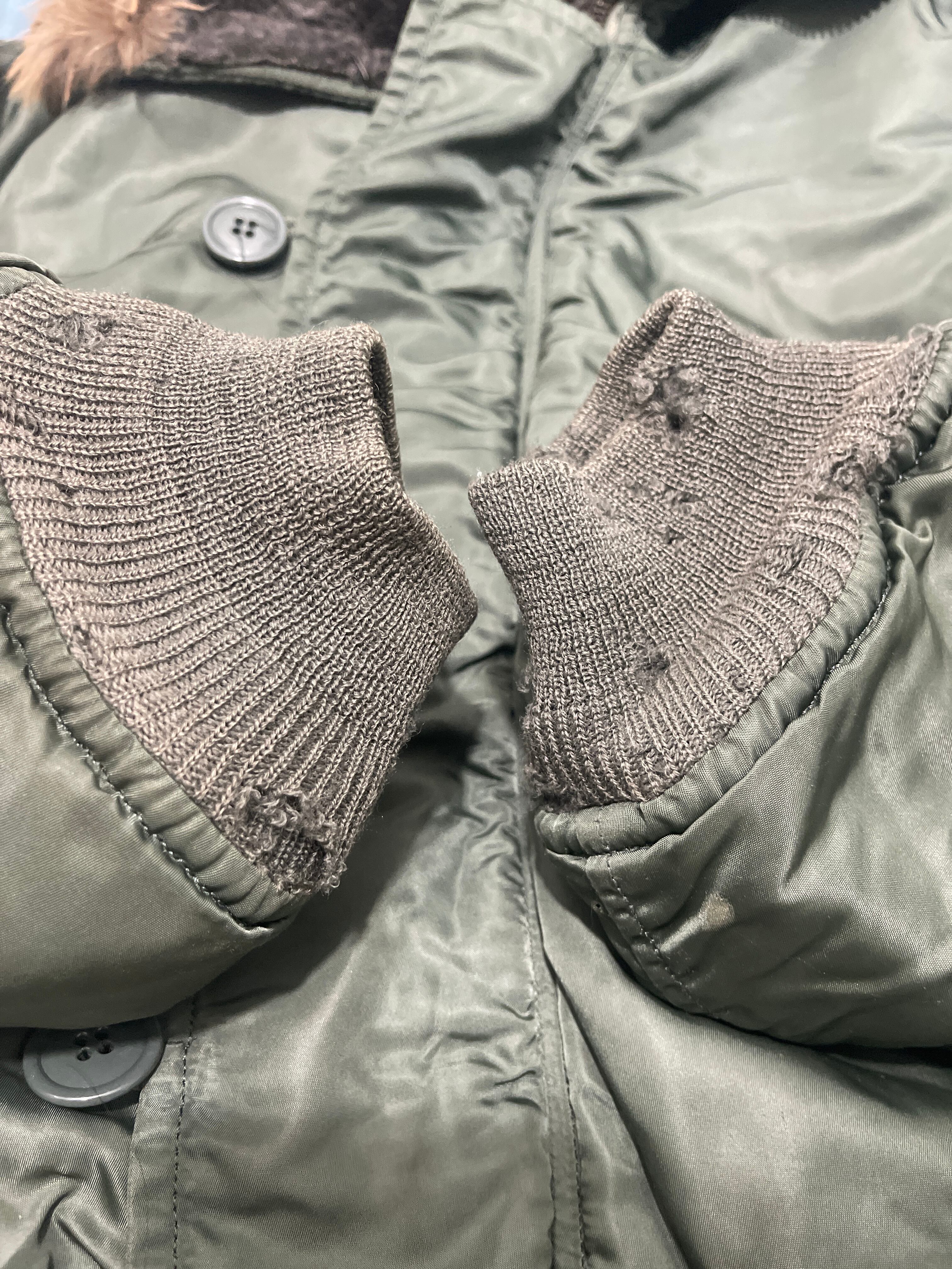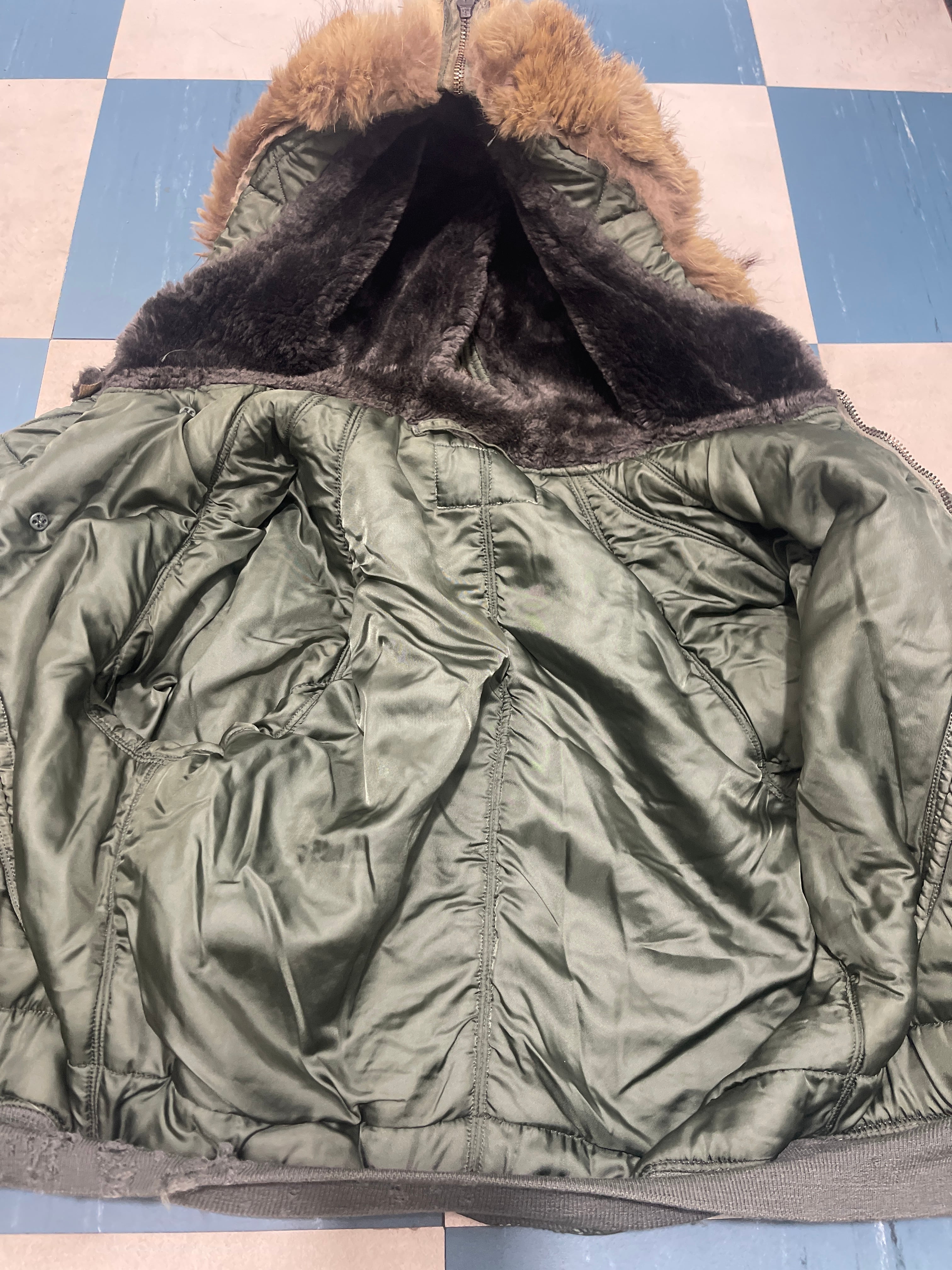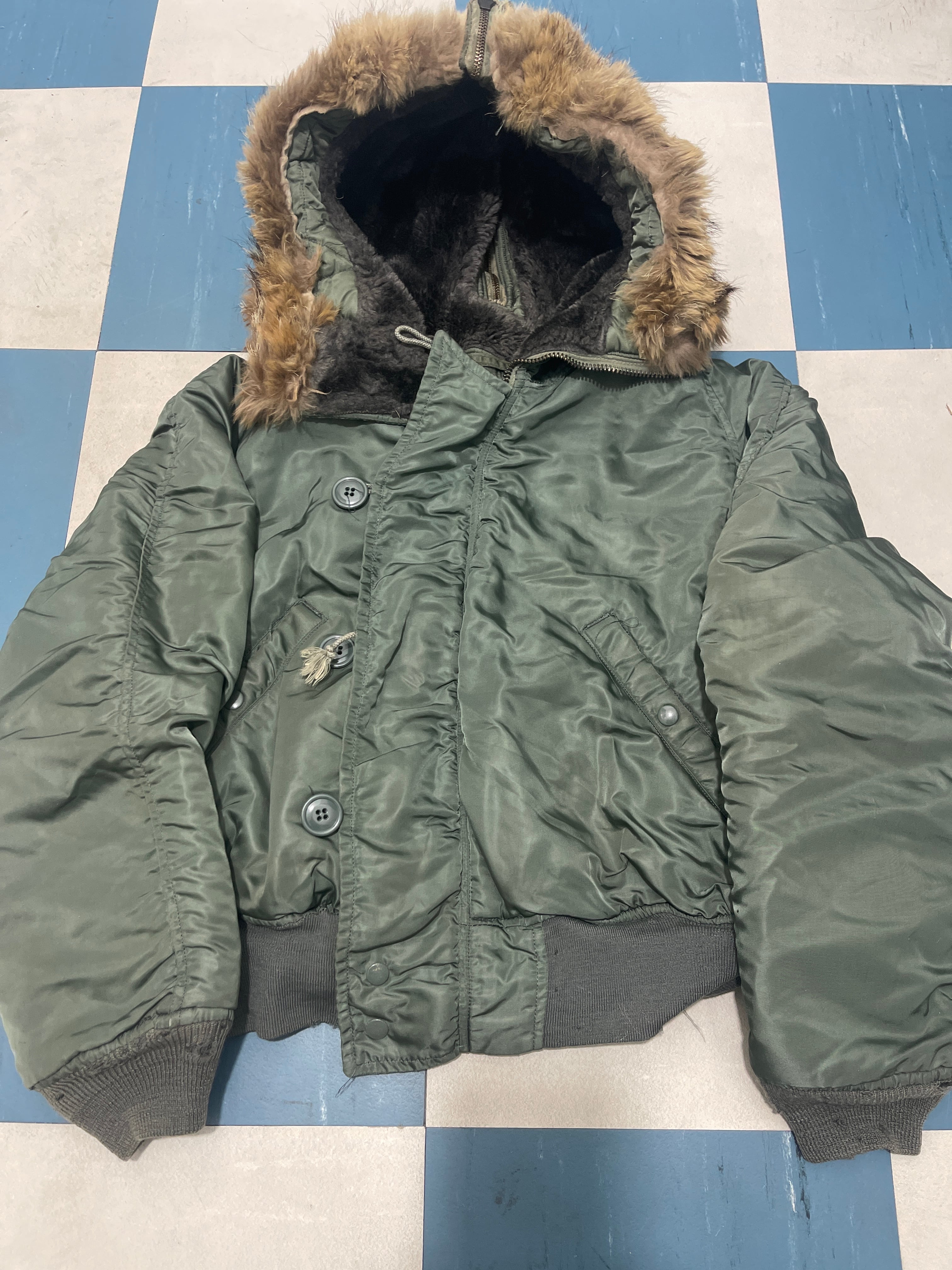 使用感、小傷、多少の汚れ、ボタン掛けが 1 箇所ダメージ。コヨーテファーは短くカットしています。タグ欠損していますが白タグの60~70年代の石綿と思われます。