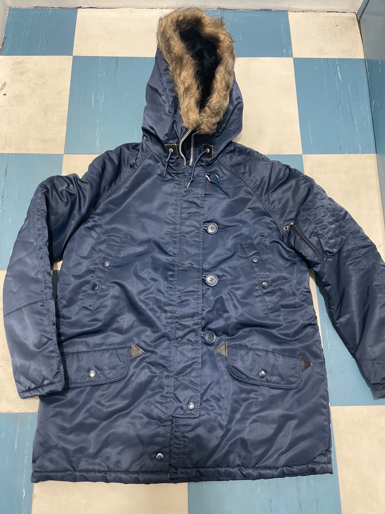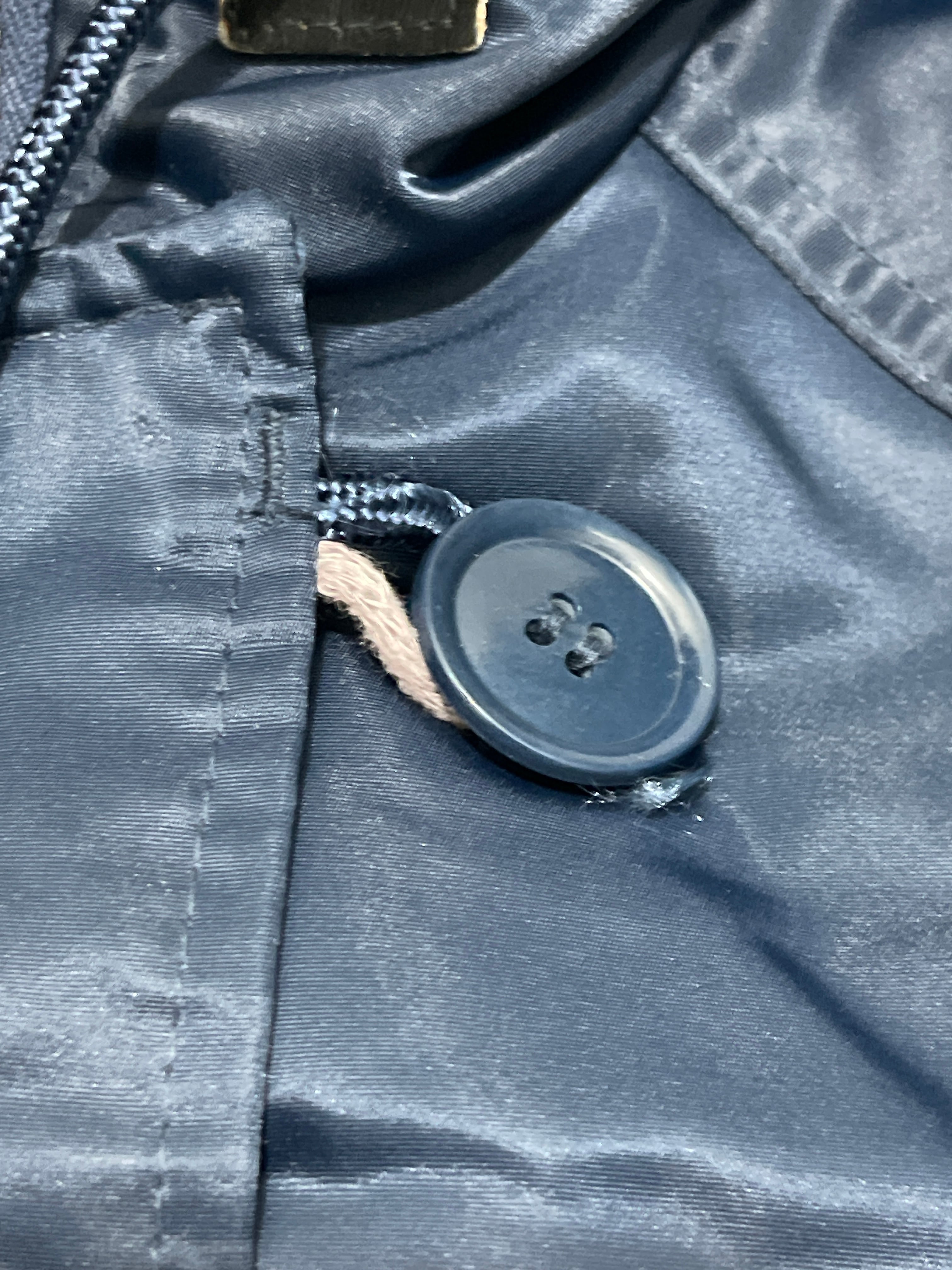使用感が殆どないので未使用品に近いかと思います。トップボタンのボタンを通す輪の生地のダメージ、ラッカーボタンの色剥げございます。アウトレット品でJC PENNEYで販売できなかった商品だと思います。ほぼ新品なので生地がシャキッとしています。