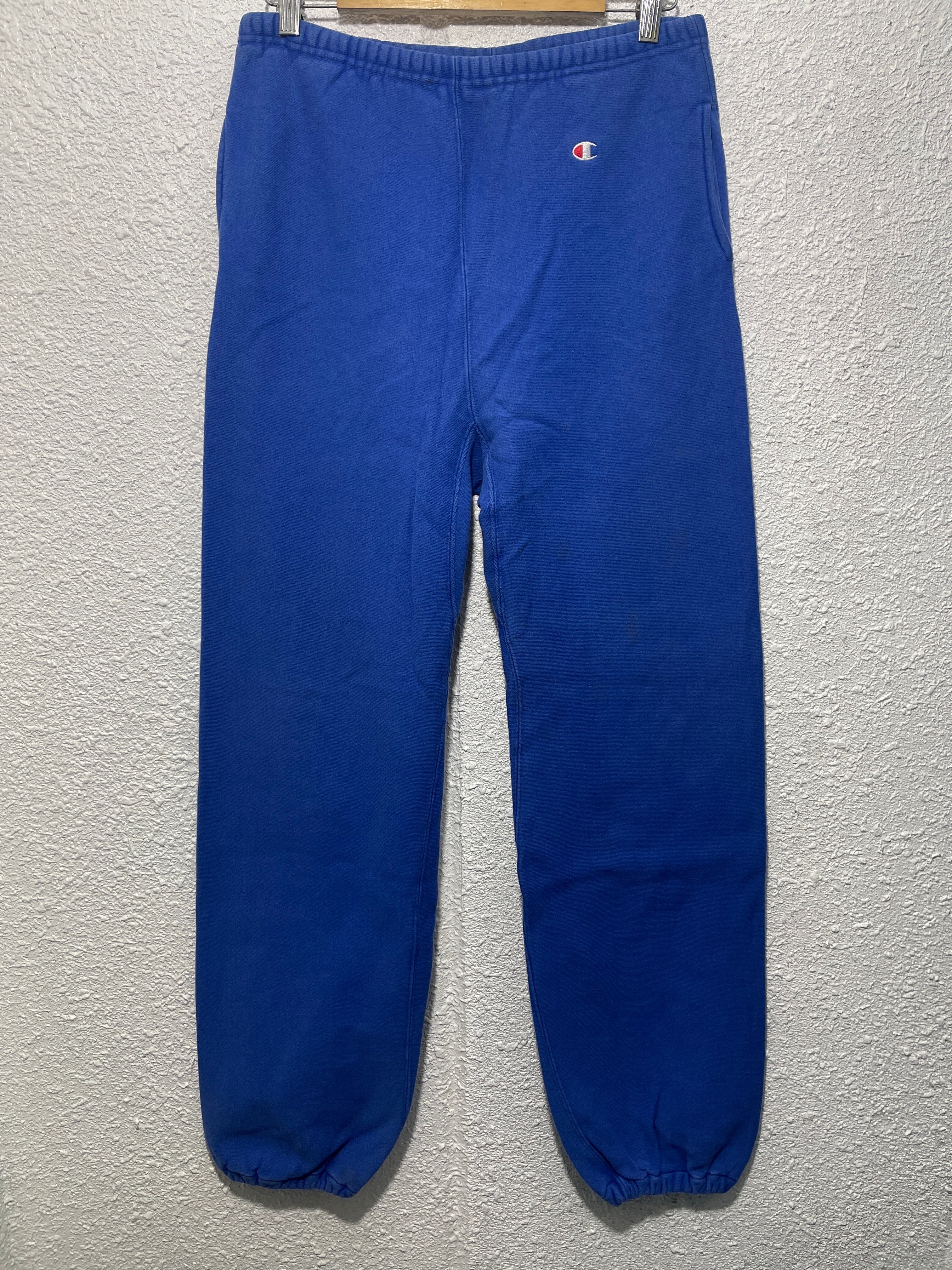 2058 80s L 青 CHAMPION REVERSE WEAVE PANTS USA製 ヴィンテージ リバースウィーブ スウェット パンツ