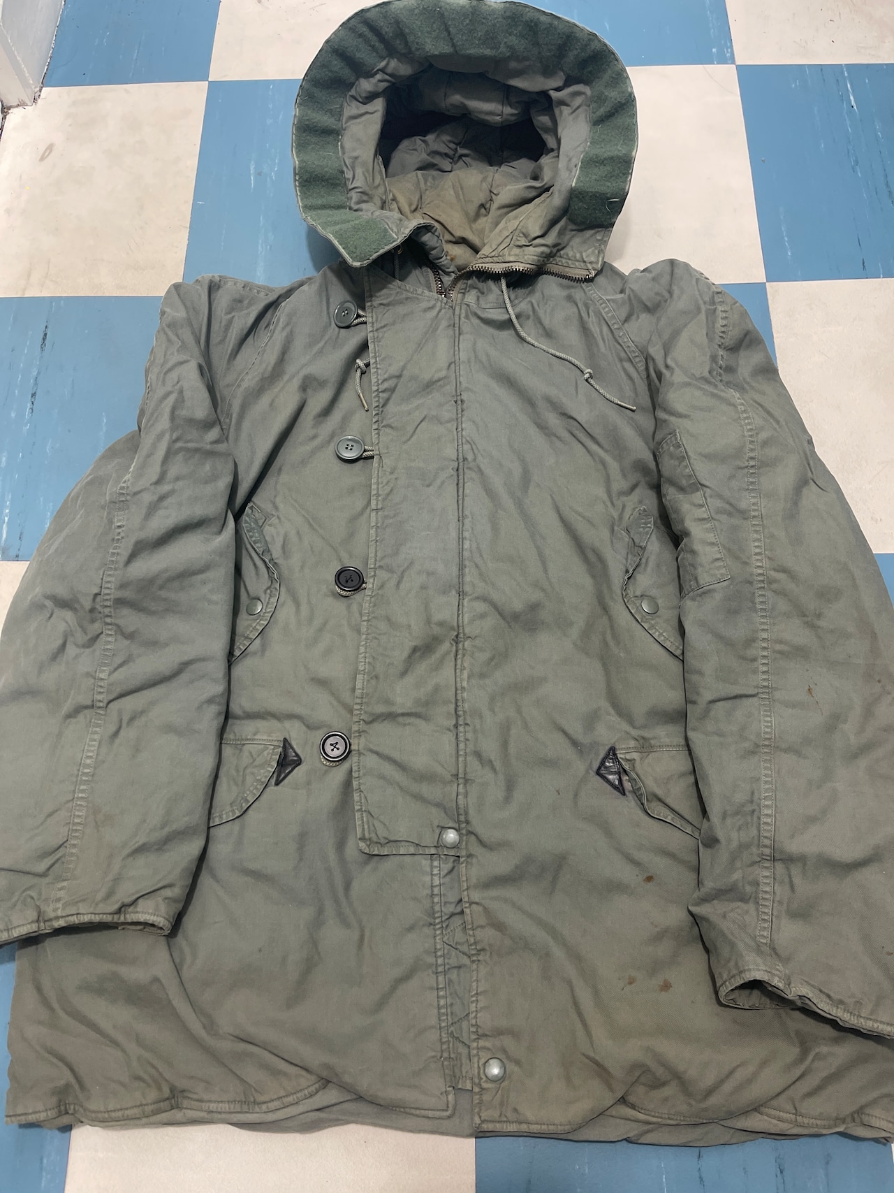 使用感、小傷、多少のさび汚れ等ありますが比較的状態の良い商品になります。コンマージップの為、60年代の初期型かと思います。背中に古い年代のカンフーパッチが付いてますが、パッチ裏に破れ等あるかもしれません。ご了承ください。ボタン2個もオリジナルではないです。