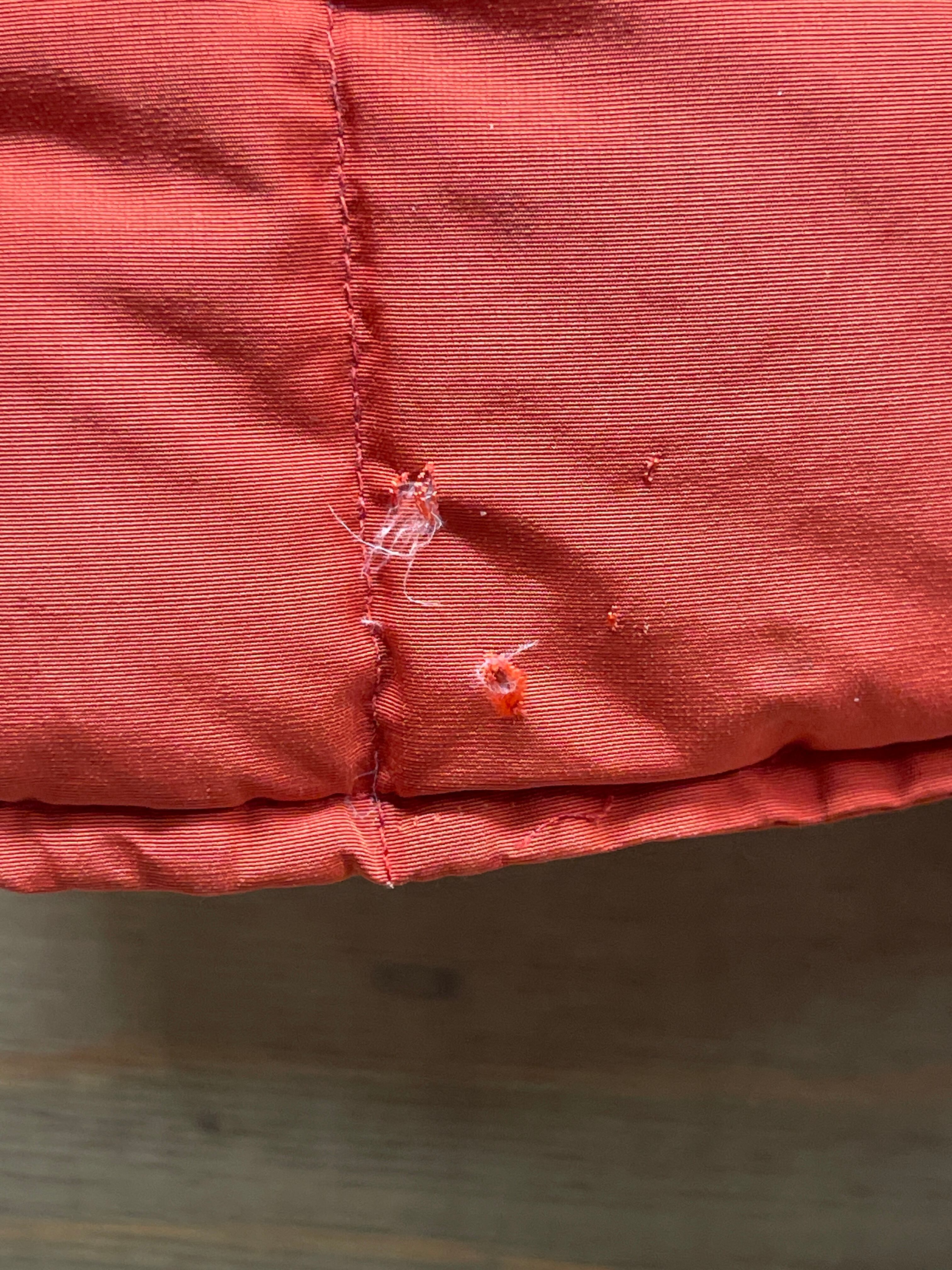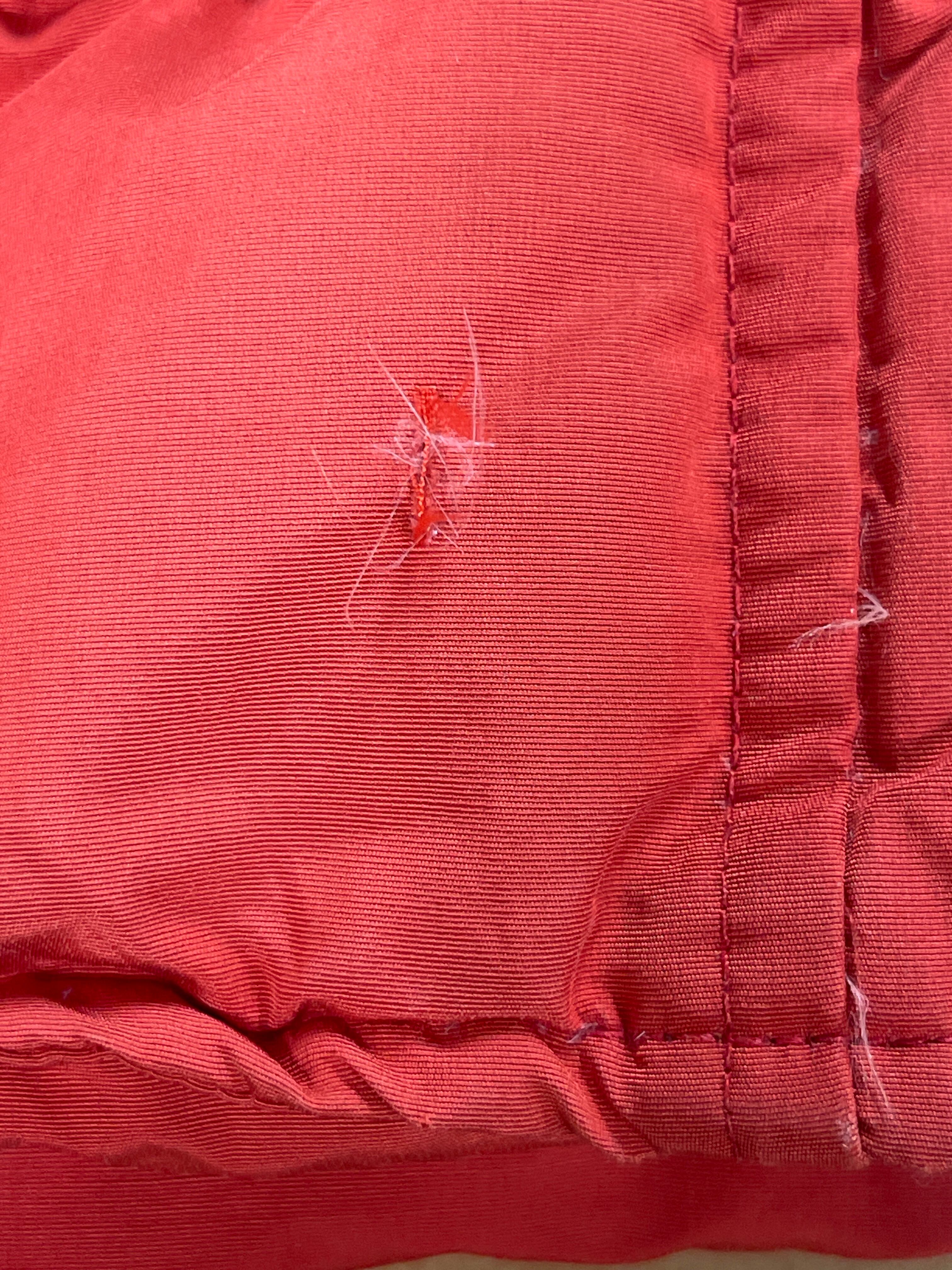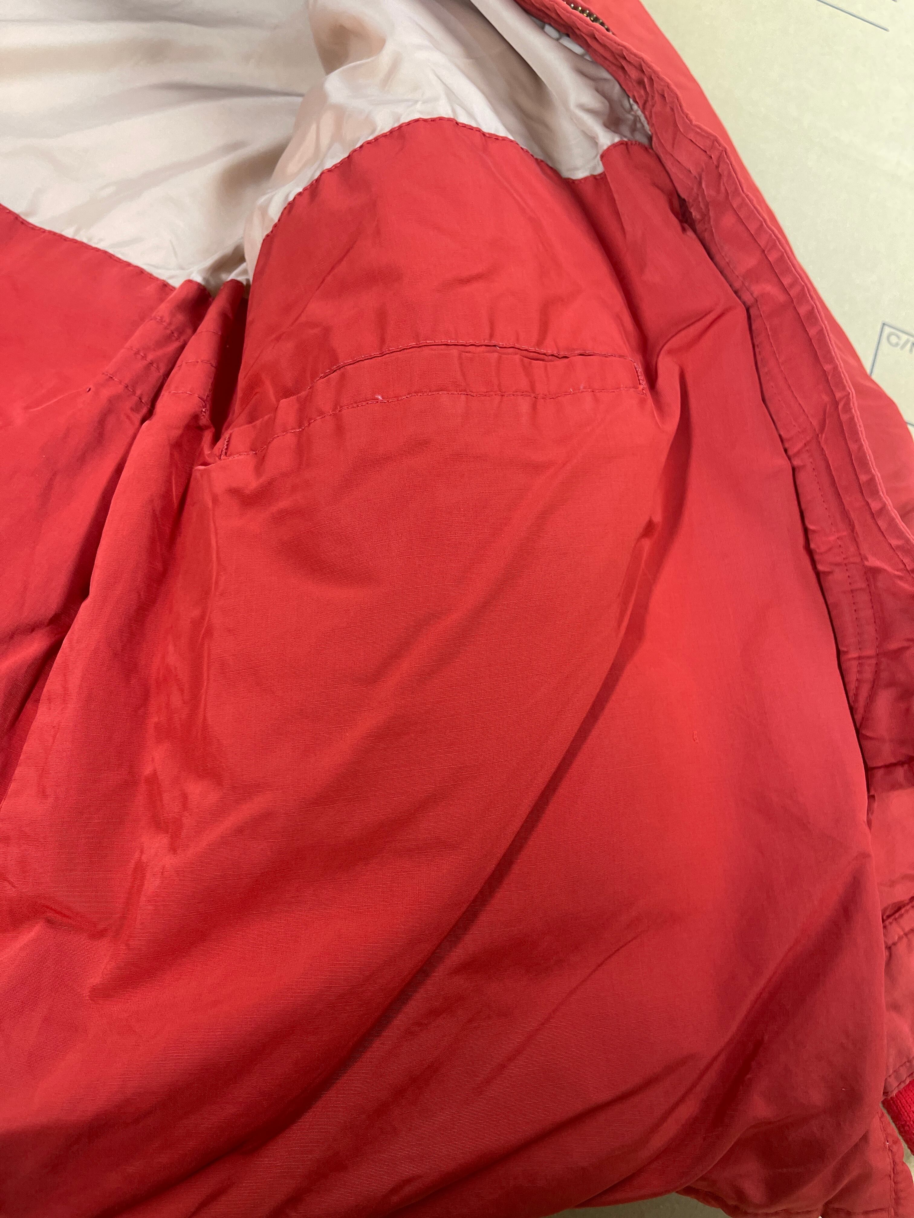 使用感、若干の色褪せ、小傷、腕に5ミリ、後ろ裾5ミリ、ポケット下1センチほどのダメージ、襟部分の硬化、多少の汚れがございますがこの年代にしては状態の良いダウンジャケットになります。ジップの上げ下げが若干渋いです。