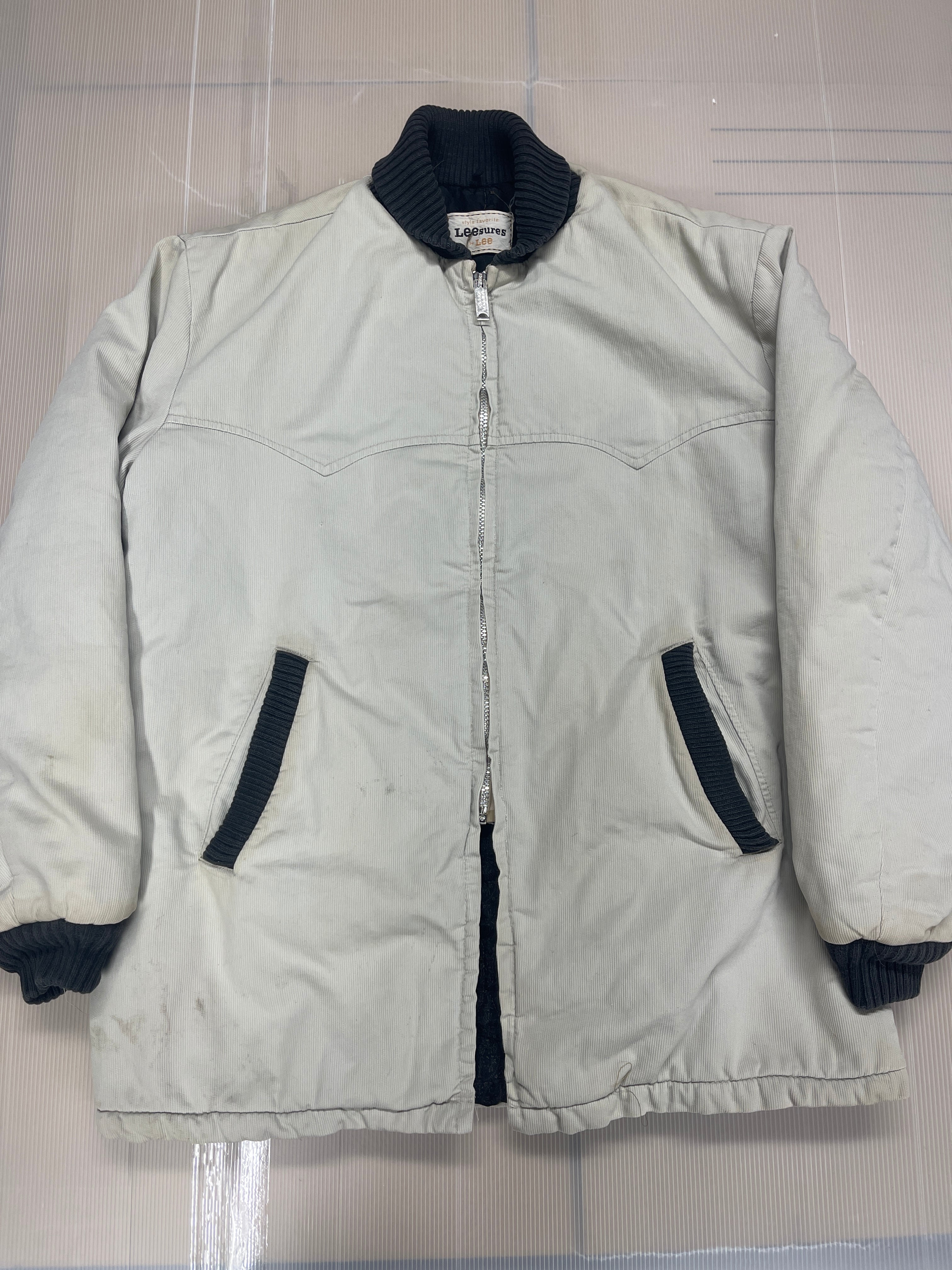 使用感強め、全体的に薄汚れ、黄ばみ汚れ、色褪せ、小傷、裏地等のほつれ、ステッチ切れ多め等があります。ジップファスナーのほつれ。LEEのピケ素材のファラオコートも珍しいです。状態中くらい。