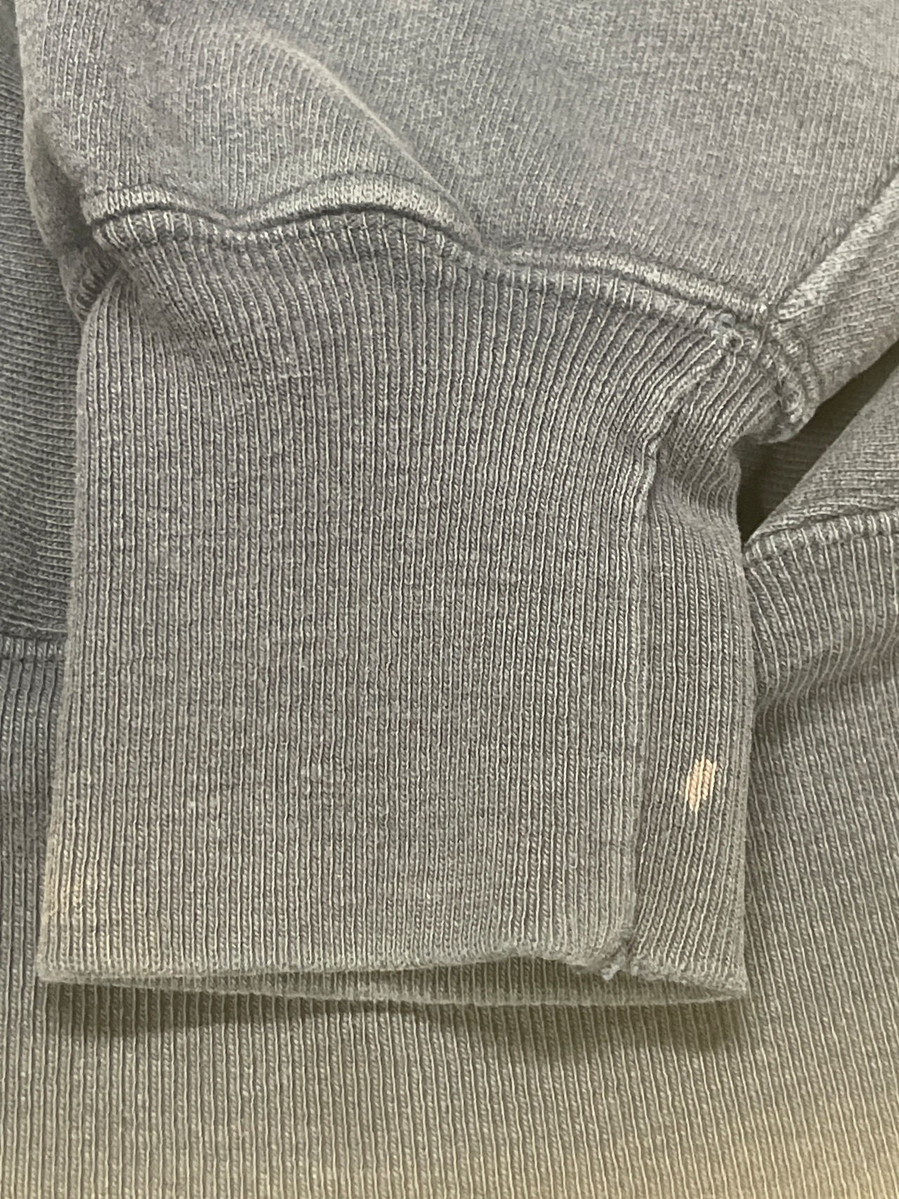 使用感があり、全体的に色褪せ、多少の汚れがございます。リブまわり多少のダメージがあります。雰囲気大変良好。