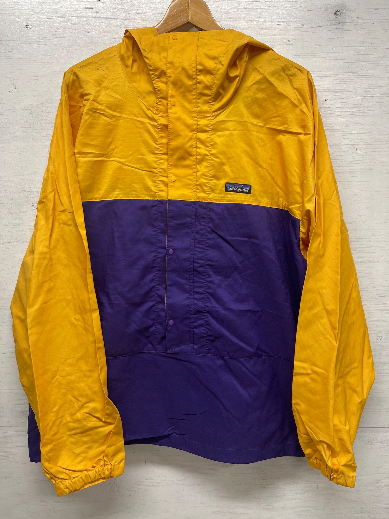 紙タグあり、未使用品の ニューマティック プルオーバーナイロンジャケットです。未使用品ですが保管時についたホコリ汚れが多少あります。未使用品なので未洗濯です。臭い等ございますのでご了承ください。こちらの商品はネバダ州のリノにあるパタゴニアの本社にて分けてもらった商品になります。汚れがあるので状態の比較的良い古着とお考え下さい。ホコリ汚れなのでクリーニングで大体綺麗になります。古着を着慣れた方なら問題なく着用できます。