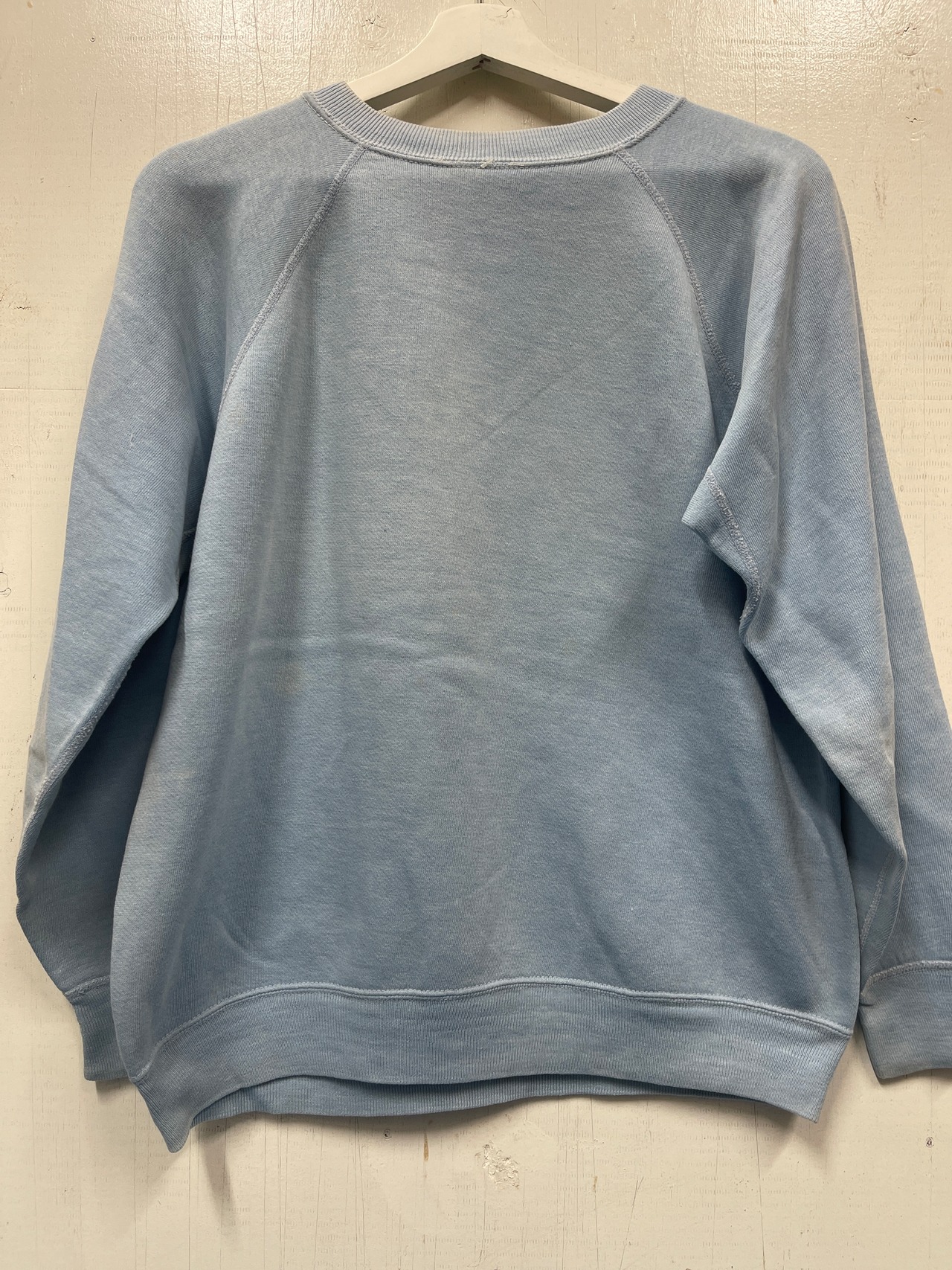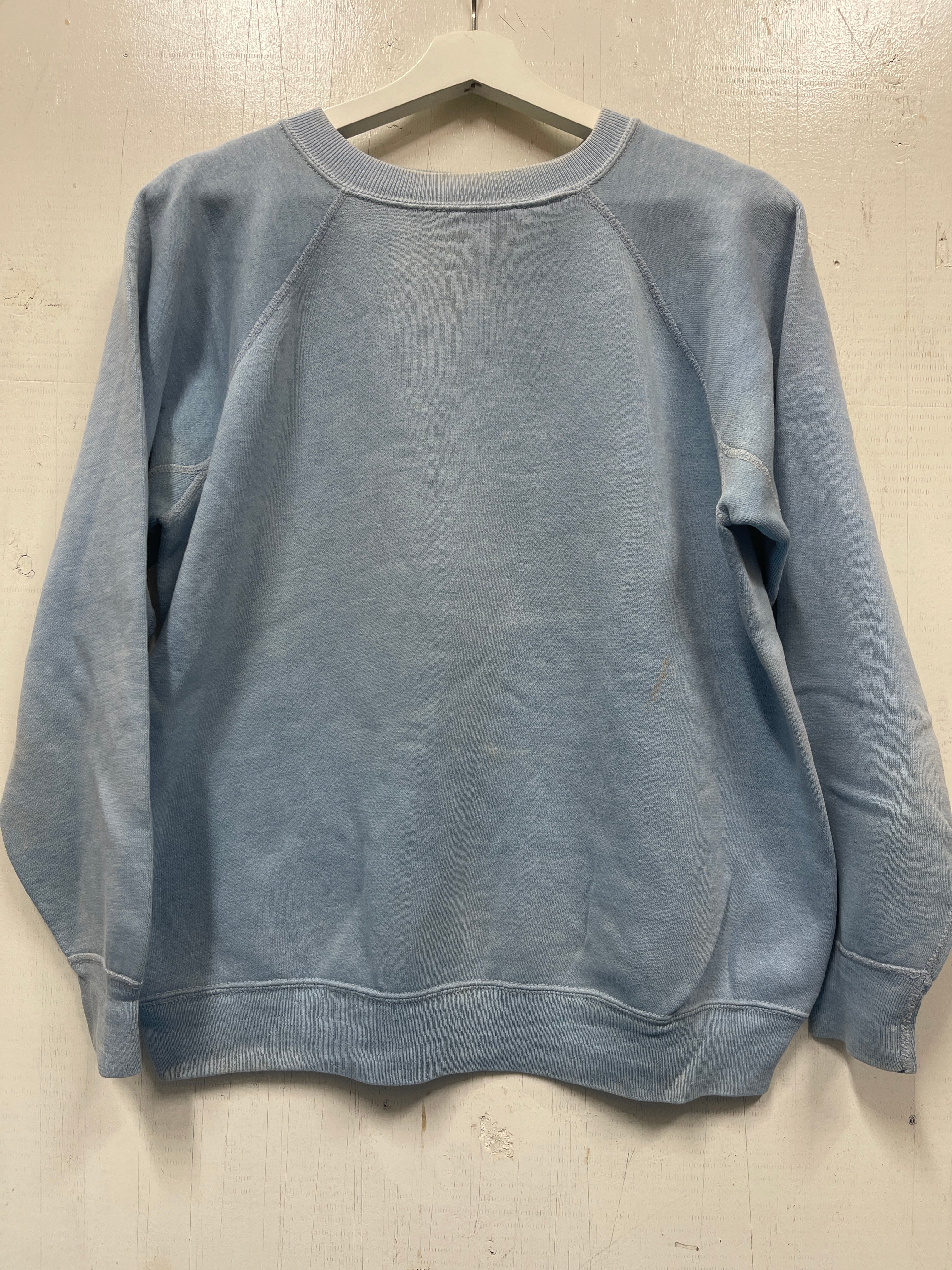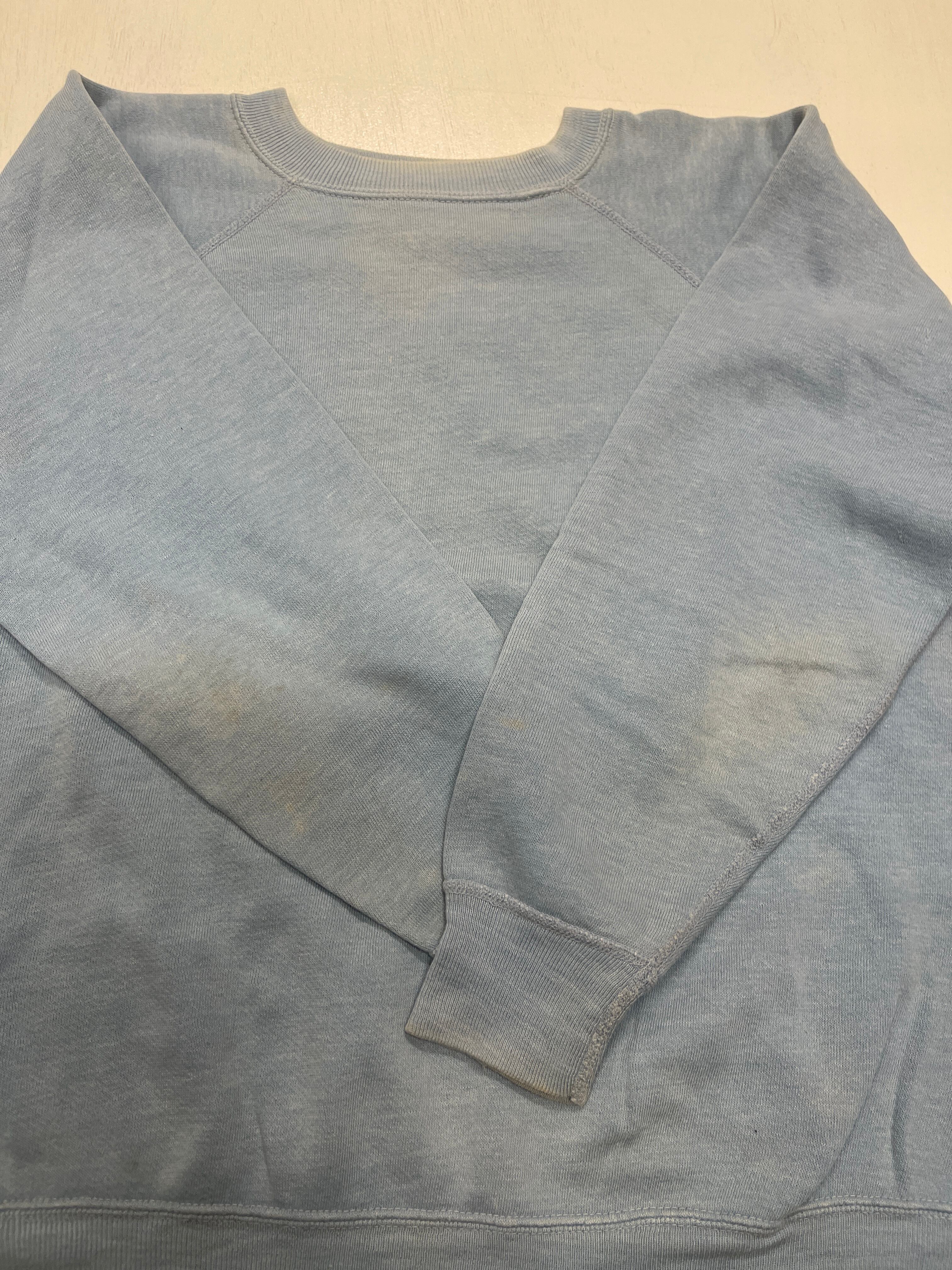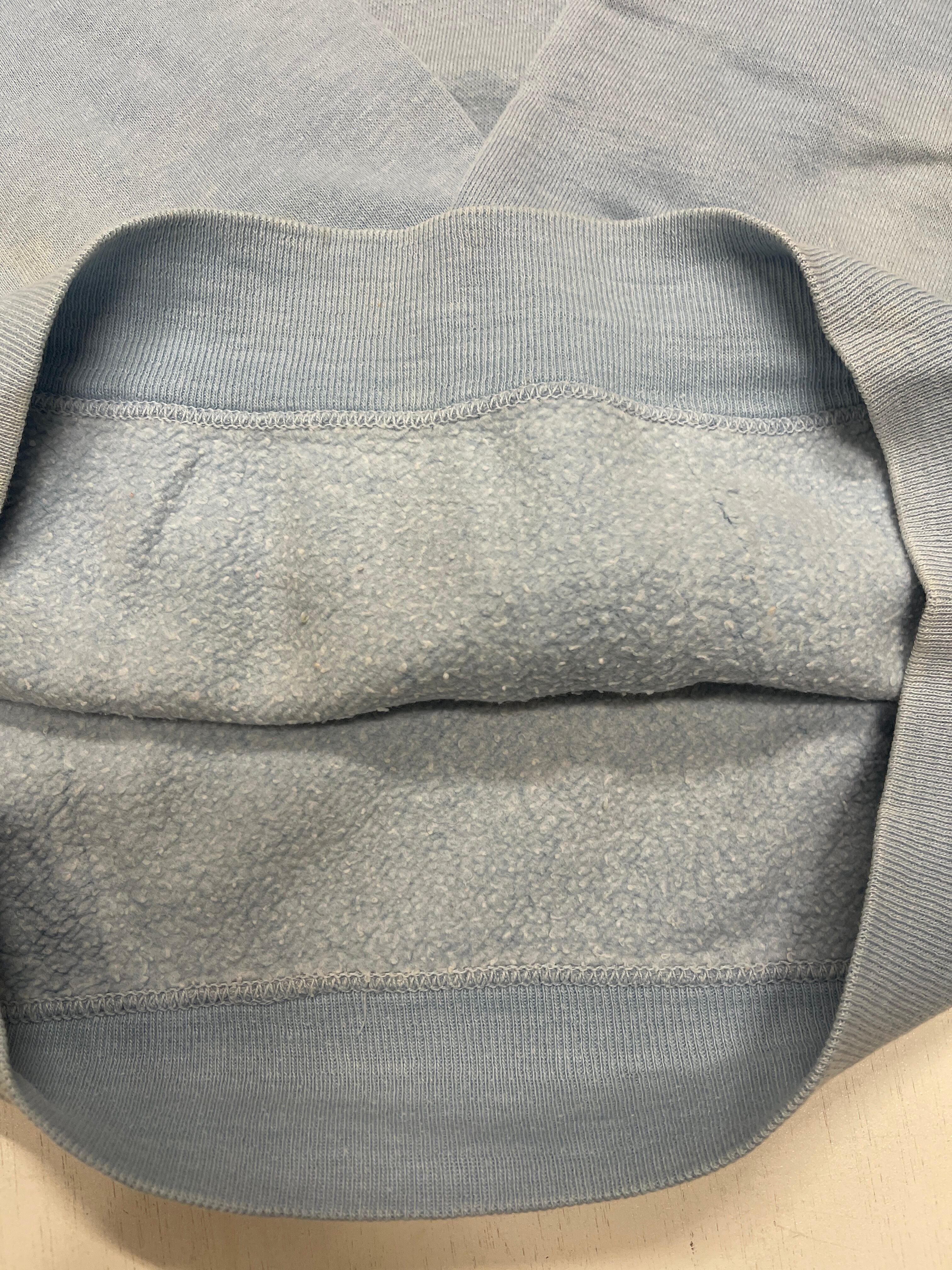 使用感があり、全体的に多少の薄い汚れがございますが、とても良い雰囲気のヴィンテージらしいスウェットになります。タグが取れかかっているので取れないように簡易的に縫ってあります。