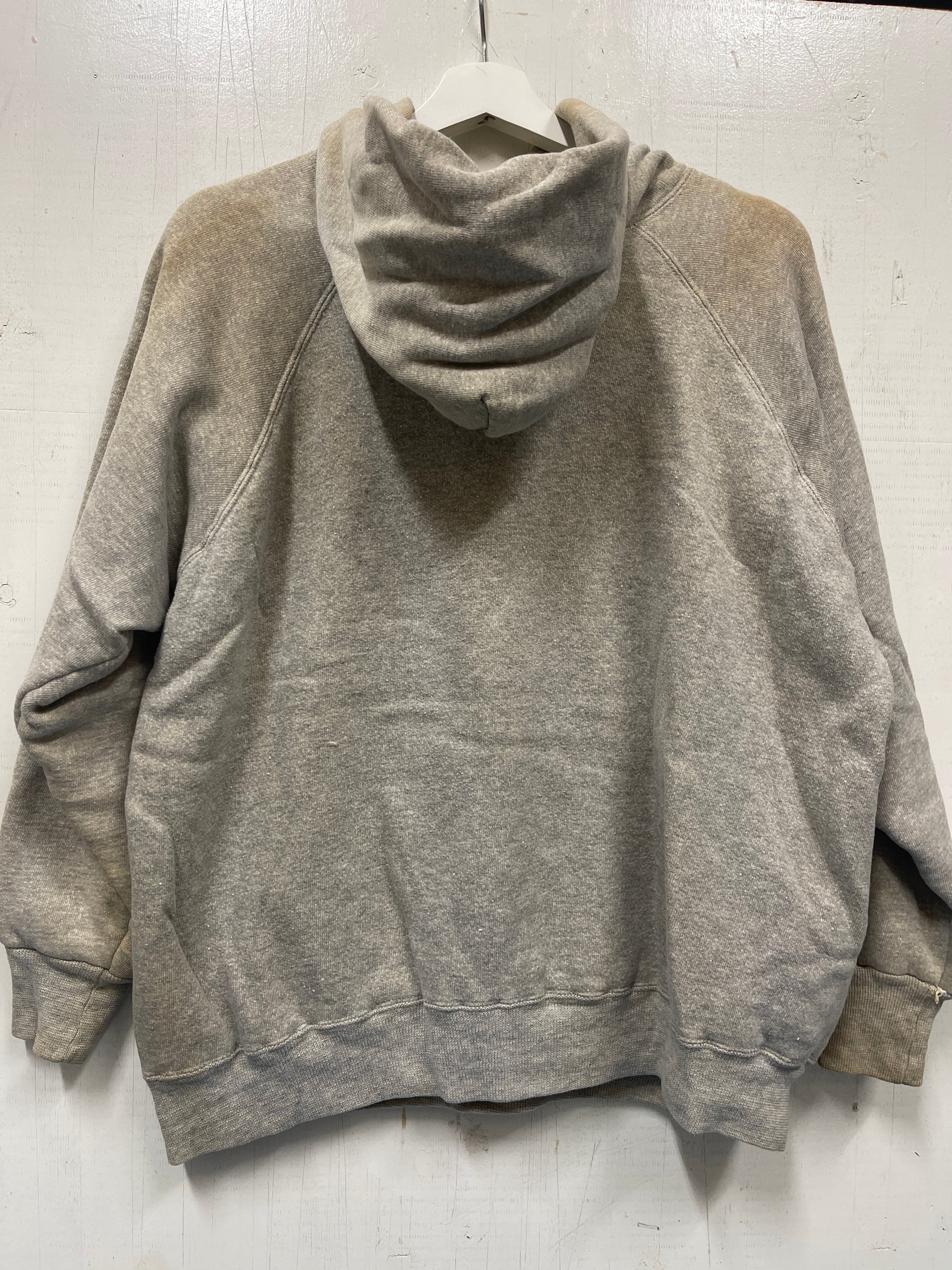 使用感があり、フェード、黄ばみ汚れも多くございますが非常に雰囲気のある貴重なビッグサイズパーカーになります。穴等のダメージはございません。汚れ具合がものすごく良いです。