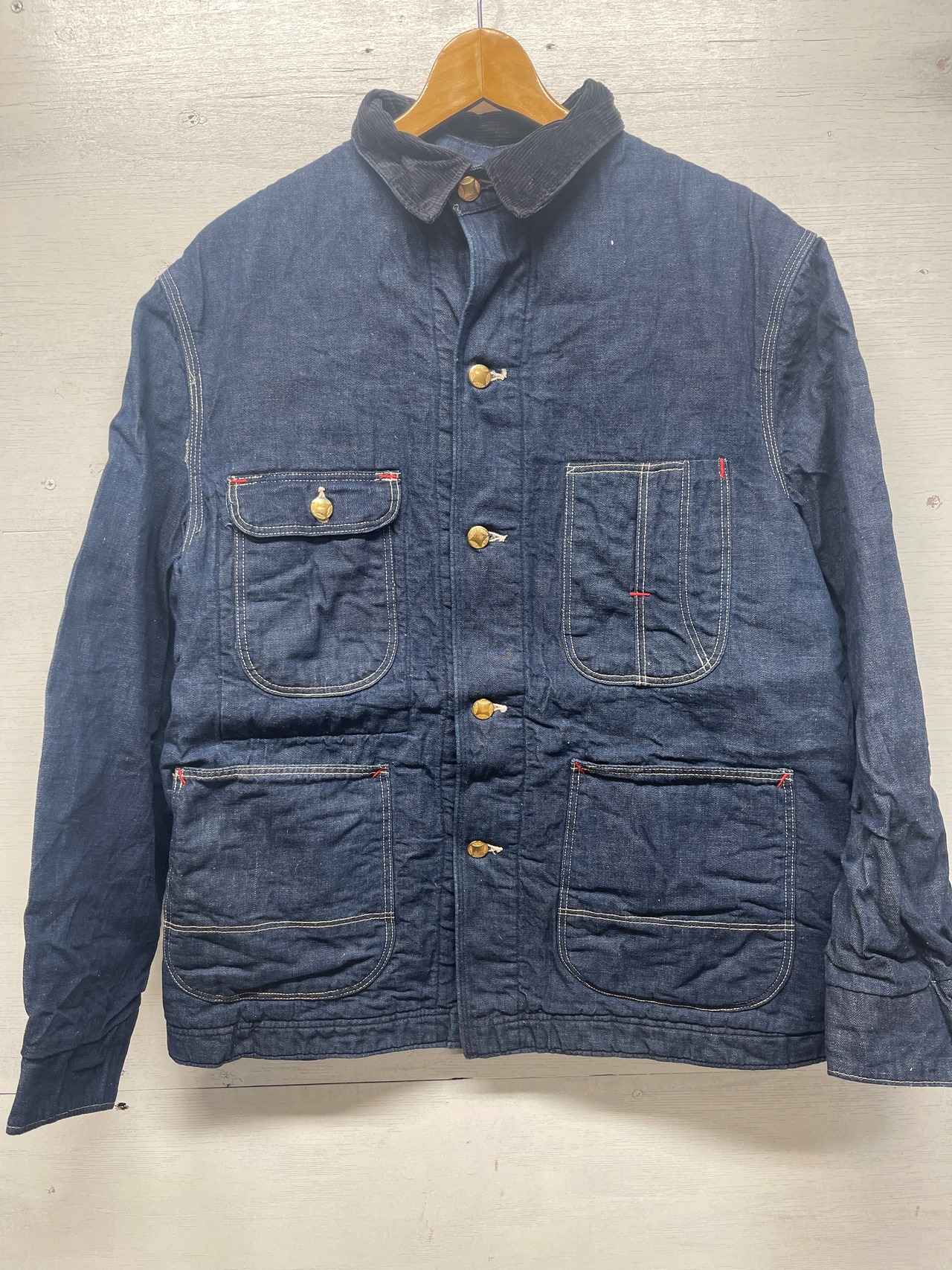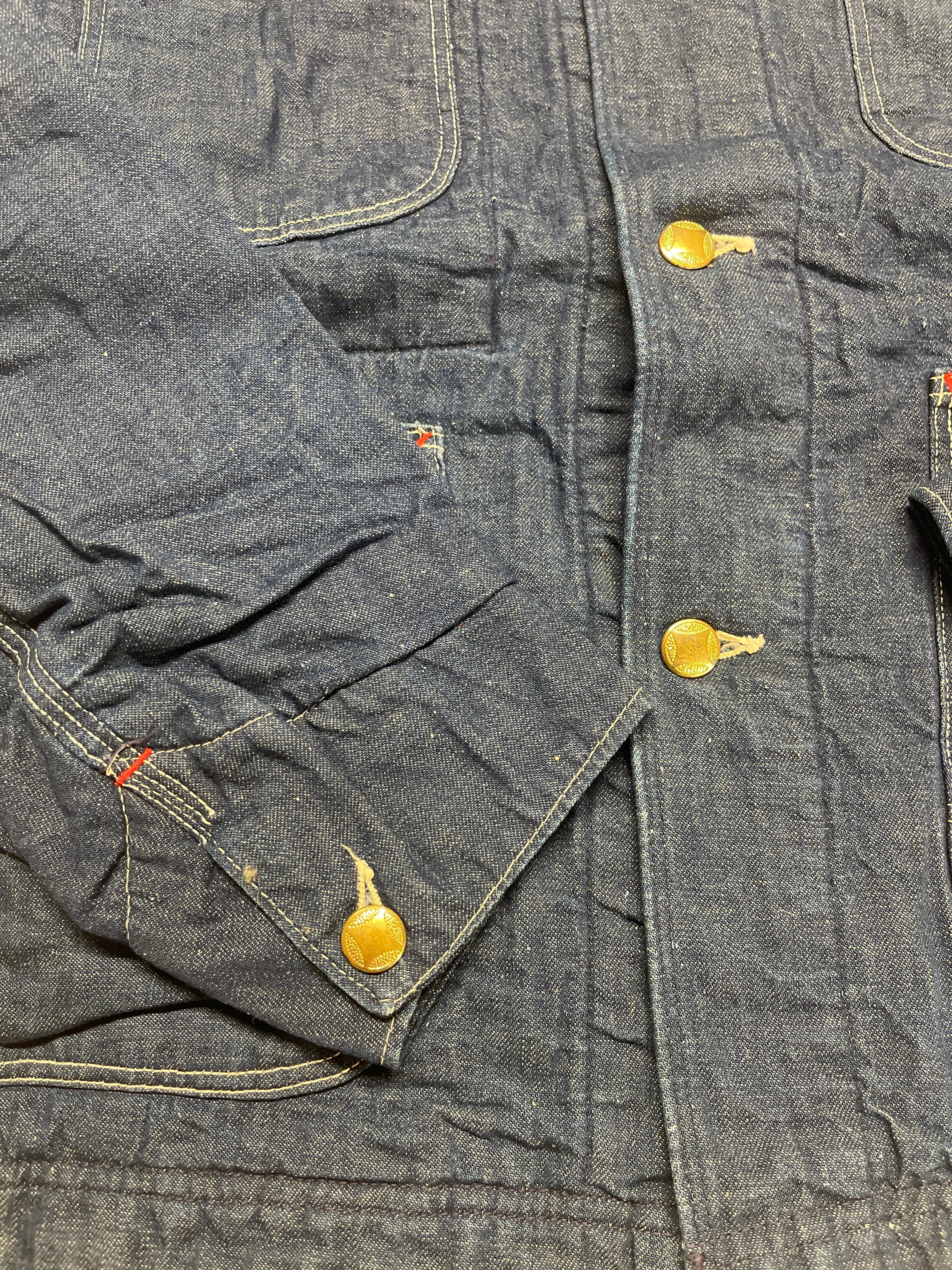 使用感は少し、小傷少し、非常に色の濃い、ダメージの殆どない極上のインディゴカバーオールです。タグはないですがヘラクレスかシアーズのカバーオールかと思います。色残り90%以上!。ジャストサイズの育てがいのあるカバーオールジャケットです。