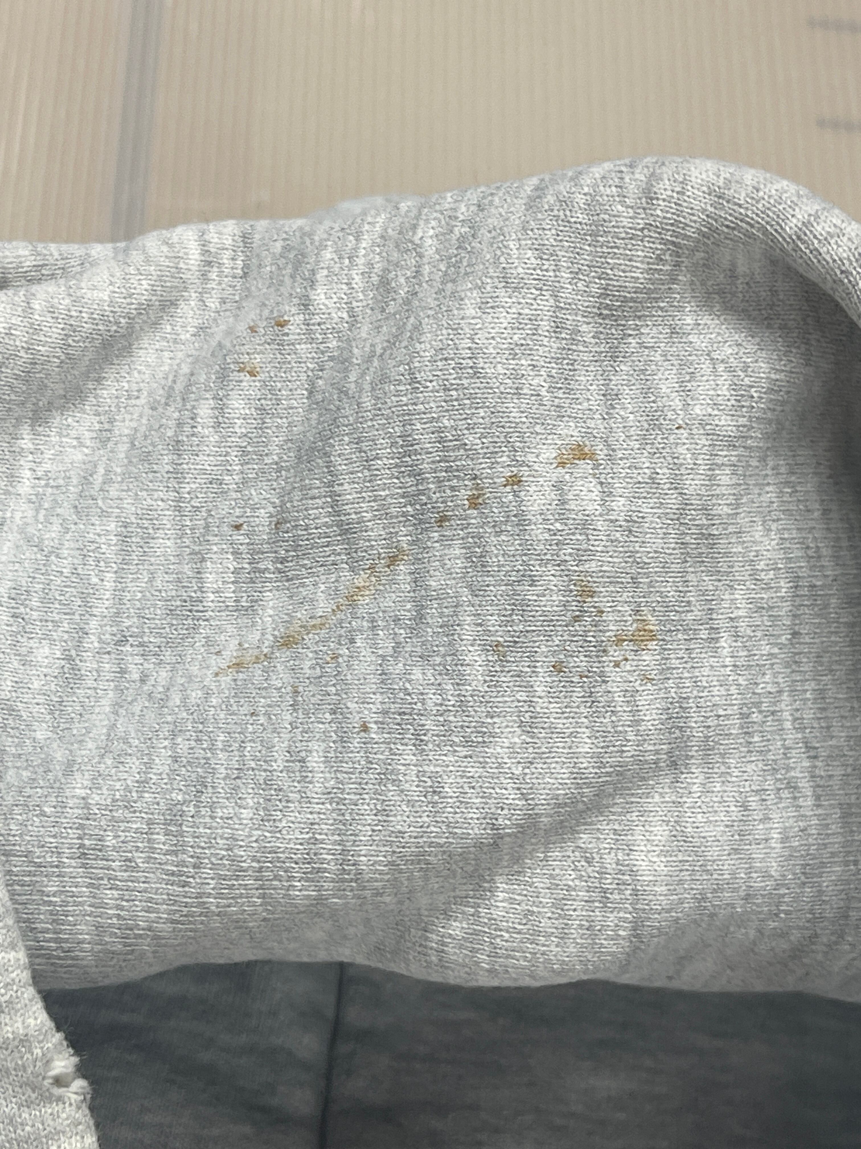 使用感があり、黄ばみ汚れ、ポケット付け根とフード回りなどのダメージがあります。少しのダメージパーカーです。