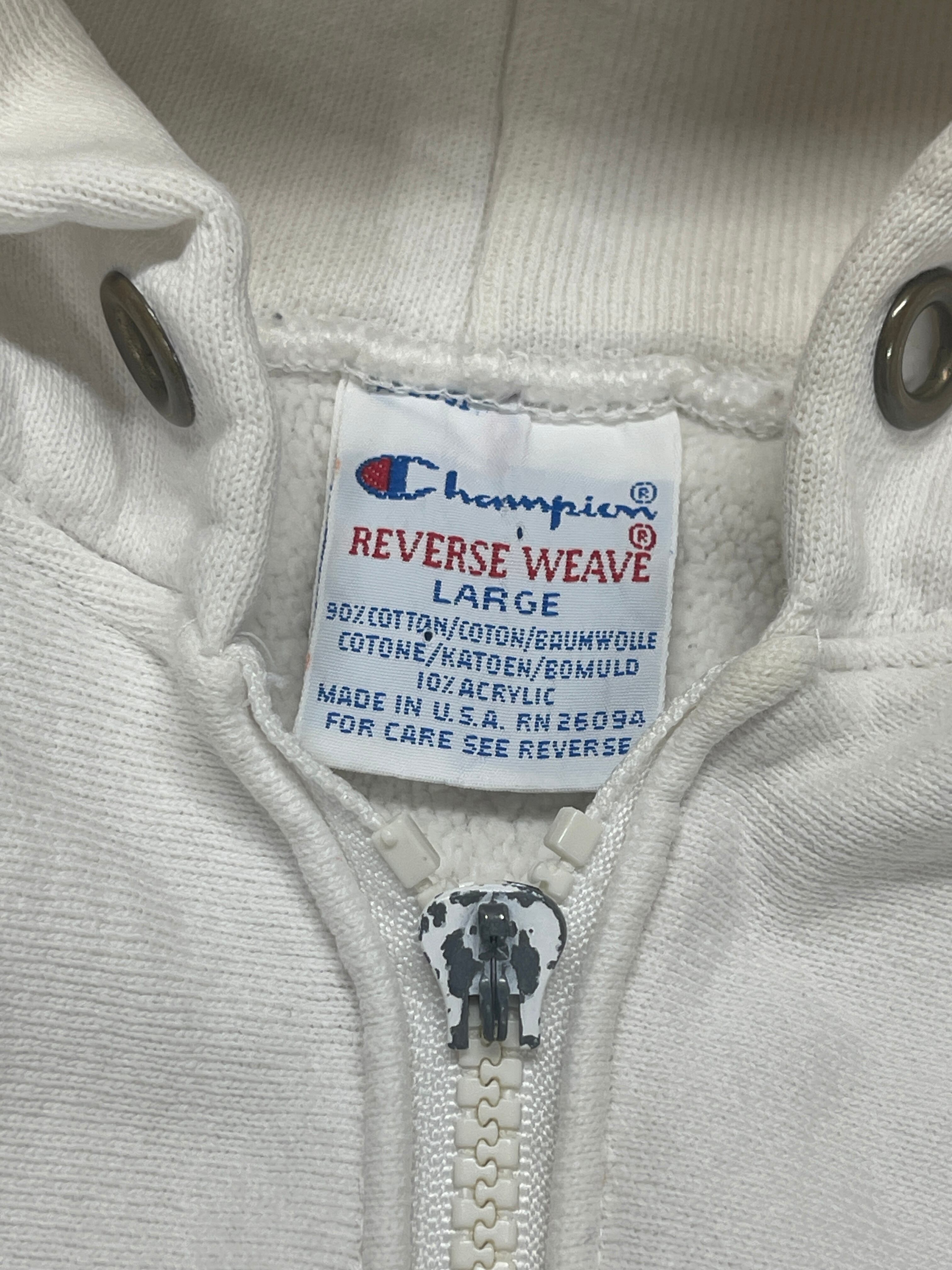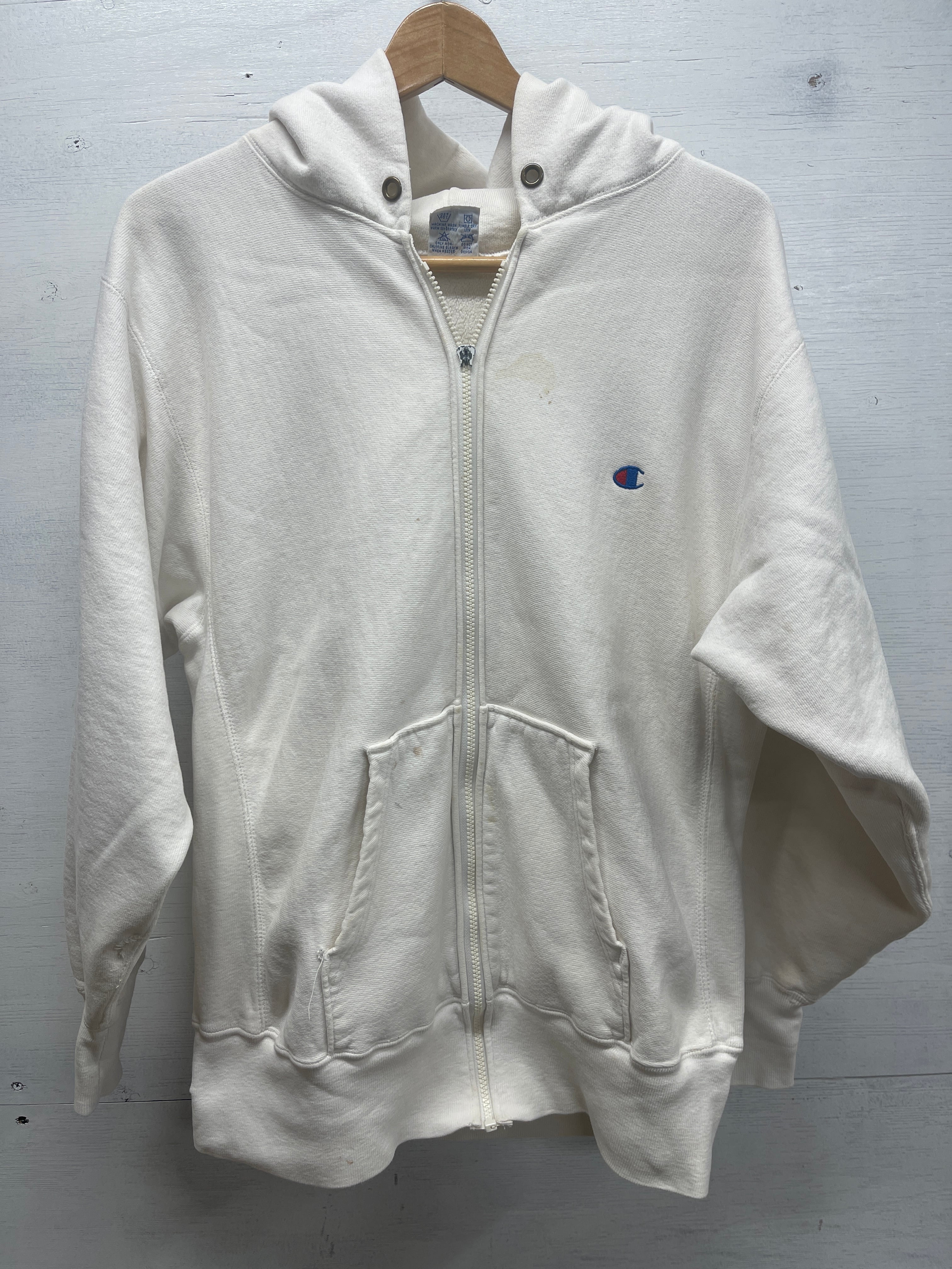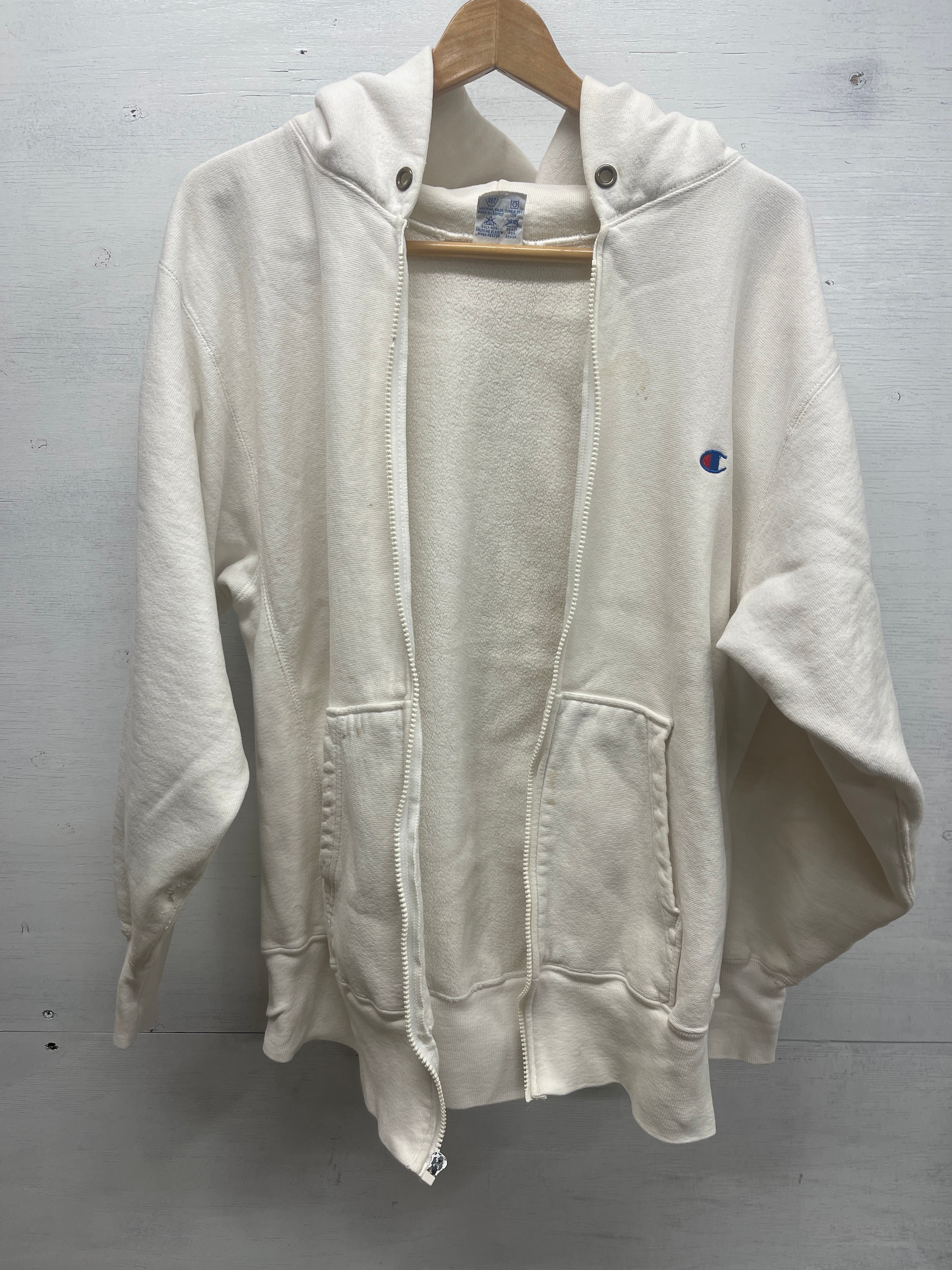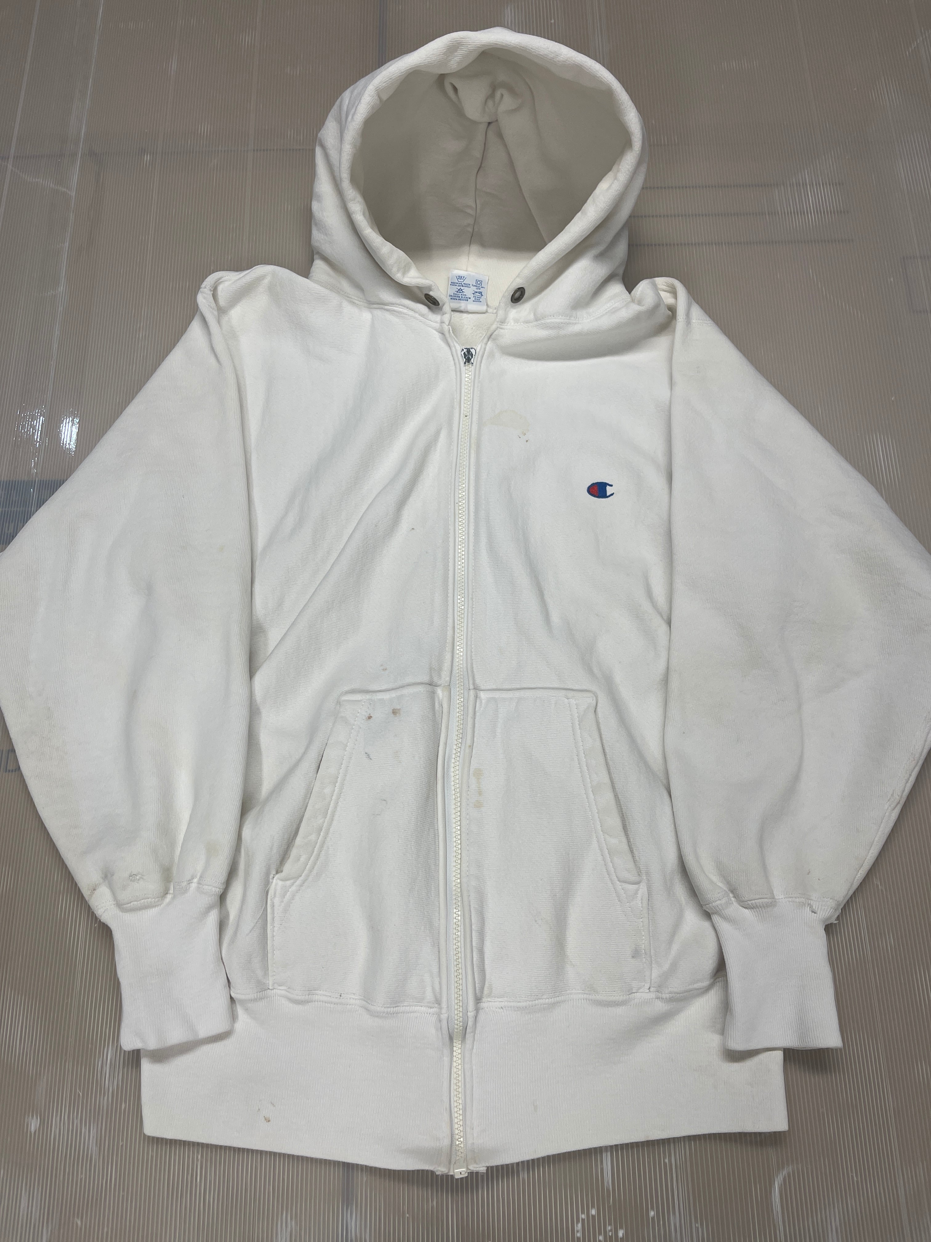 2584 ボロ L 90s USA製 CHAMPION ジップ パーカー HOODY WHITE